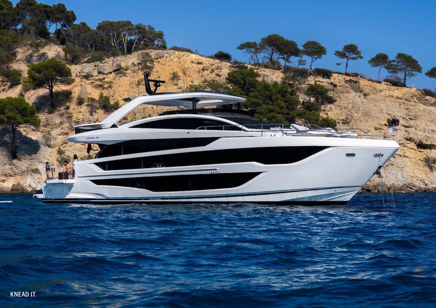 Feel the pulse of the Balearics aboard the Pearl 82 luxury crewed motor yacht KNEAD IT, where every anchorage turns into its own celebration, and bathe in the upscale comfort of her 5 cabins for 10 guests.Your Charter Crew:
