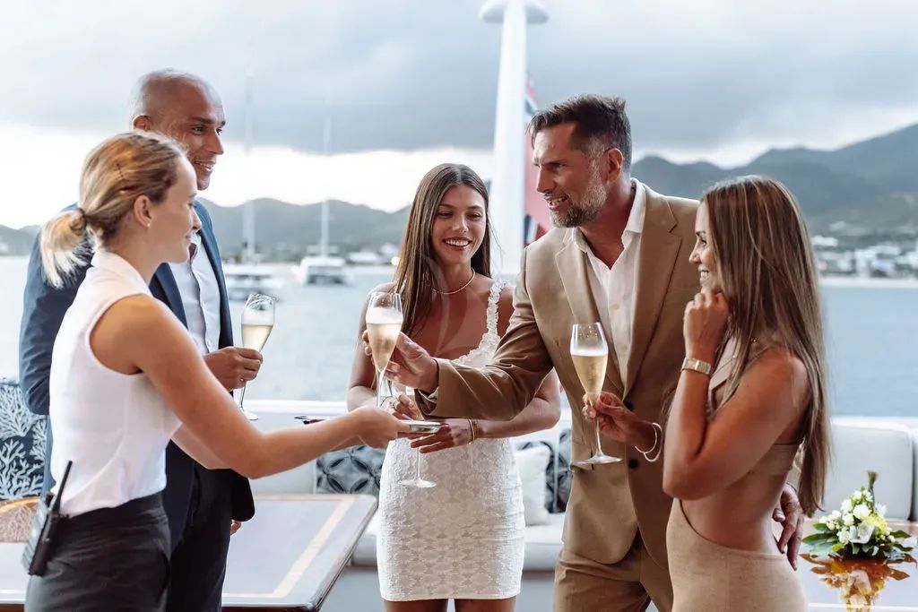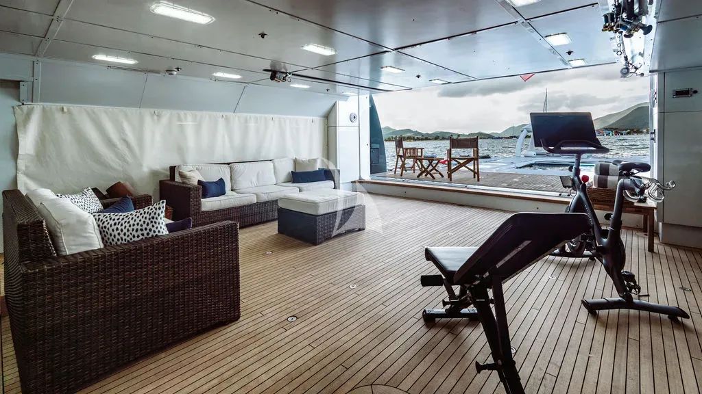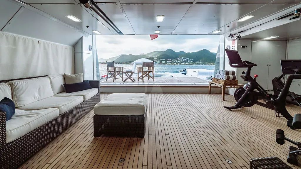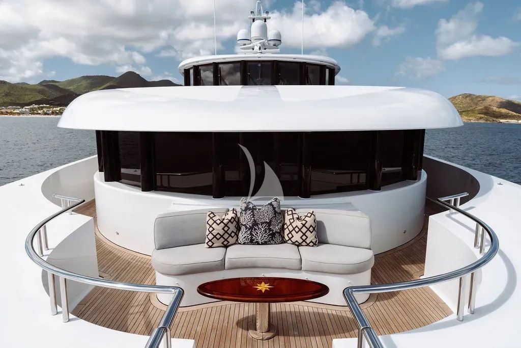 The sundeck is her crown jewel, an open sanctuary suspended between sea and sky. Here, an infinity-edge pool jacuzzi melts seamlessly into the horizon, its waters mirroring the shifting hues of the Caribbean. Loungers surround a polished bar where the day begins with fresh fruit and ends with champagne. For quieter moments, the foredeck lounge offers a front-row seat to sunrise or the first evening stars, while the crew prepares a candle-lit dinner on the aft sky deck, pairing island flavors with sea breezes and the glow of St. Barths in the distance.