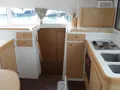The 4 double cabins have large windows, and the spacious saloon offers 360° views. Sliding doors open into the comfortable cockpit. The sailing yacht is very easy to handle, with the raised helm station offering excellent visibility all around. The yacht has been specially fitted out for tropical sailing with a large, efficient water cooled refrigerator and 2 x 110 watt solar panels.