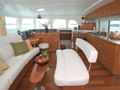 A bimini-shaded fly-bridge provides excellent visibility for the helm and incorporates a long bench seat for crew. All lines are led to the fly-bridge making the yacht easy to sail when short handed.