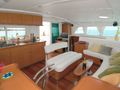 Below decks the saloon area is exceptionally bright with large vertical windows offering panoramic views and plenty of light. Seating is carefully thought out with a console settee and an L-shaped bench settee opposite. An oval coffee table, which can be replaced with the wood cockpit table, really makes this area multi functional. The fully equipped galley with fridge, 3–burner stove with separate oven and ample, stainless steel counter-tops (including 3 sinks) completes the below decks living area. A generator and air conditioning provide the ultimate comfort in Caribbean sailing.