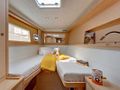 - In her large twin hulls youll find 4 comfortable, luminous and roomy cabins with individual bathrooms.
