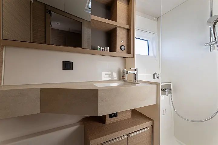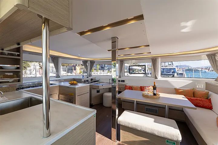 A refreshing sense of freedom greets you the moment you step aboard this Lagoon 46, where thoughtful design and smooth performance come together to shape an unforgettable cruising experience. Her twin hulls give you a stable platform, and her well-balanced sails respond beautifully to the breeze, turning even casual afternoons into something special. The saloon’s open-plan layout and large windows flood the interior with natural light, creating a relaxing haven between anchorages. On deck, the foredeck lounge is your space for stretching out beneath the sun, while the aft alfresco area invites long, comfortable meals surrounded by sea views.