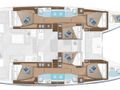 This Lagoon 50 is one of the largest Lagoon sailing catamarans. It has a huge open flybridge, giving everyone plenty of space to relax, sunbathe, and enjoy the boat. There is a fantastic seating area on the foredeck, ideal for pre dinner drinks and socialising. There are 6 contemporary double cabins, 4 with their own ensuite. Additionally, there is a crew cabin in the forepeak.