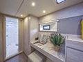 The 43 PC is a completely redesigned mid-sized catamaran built with the quality foundation that has come to be expected of Leopard Catamarans. The yacht features a large flybridge which includes a grill, wet bar and direct access to the sunbathing platform found forward. The layout, with sliding glass doors between the settee and aft cockpit seating area, plus a large window forward and access door to the bow, allow for nearly 360-degree panoramic views and create a feeling of continuous indoor-outdoor living space.