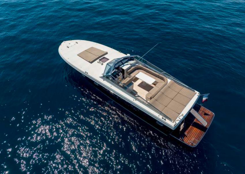 Her spaces are designed for the natural flow of a Riviera day. The upper deck offers an open lounge setting where guests can gather for drinks, conversation, and long stretches of easy enjoyment under the sky. At the foredeck, the atmosphere becomes calmer, giving you a front-row seat for sunbathing, unwinding, or taking in the coastline as it moves past. Inside, modern lines, soft finishes, and an inviting atmosphere provide a comfortable escape when you want a quieter moment away from the sun.