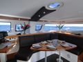 The Lipari also follows some of the newest design trends in cruising cats. It has significant headroom below and essential bridgedeck clearance that comes at the cost of increased windage. Also, instead of the canvas bimini raised above the salons coach roof that youll find on older cats, the Lipari follows the trend of simply extending the saloon coach roof over what could be called the cockpit but might more accurately be termed the exterior lounge area. The helm station centralizes the running rigging and provides seamless access to the deck as well as sightlines to the boats perimeter, or at least most of it.