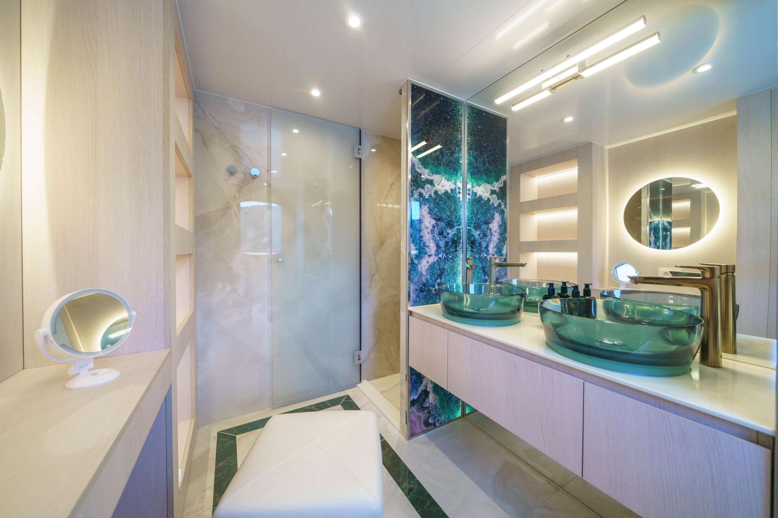 Move inside, and the mood becomes intimate and welcoming. MAIA’s cozy saloon, complete with a dedicated dining area, is perfectly sized for small gatherings, whether you are celebrating a special moment or simply enjoying a change of scene from the deck. After a day filled with swimming, exploring, and good wine, retreating to her cabins feels like stepping into a curated retreat; each one is well-appointed and features its own ensuite bathroom, so mornings start fresh and unhurried.