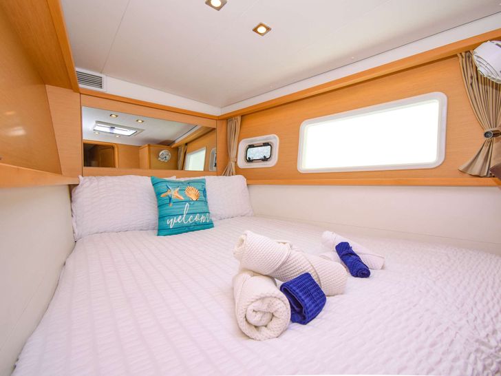 This 2016 (2022 Refit) Lagoon 450 offers an amazing amount of space for her size. There are four beautifully appointed queen sized staterooms with lots of light and storage space. Each of the cabins have climate control and pristine ensuite bathrooms.