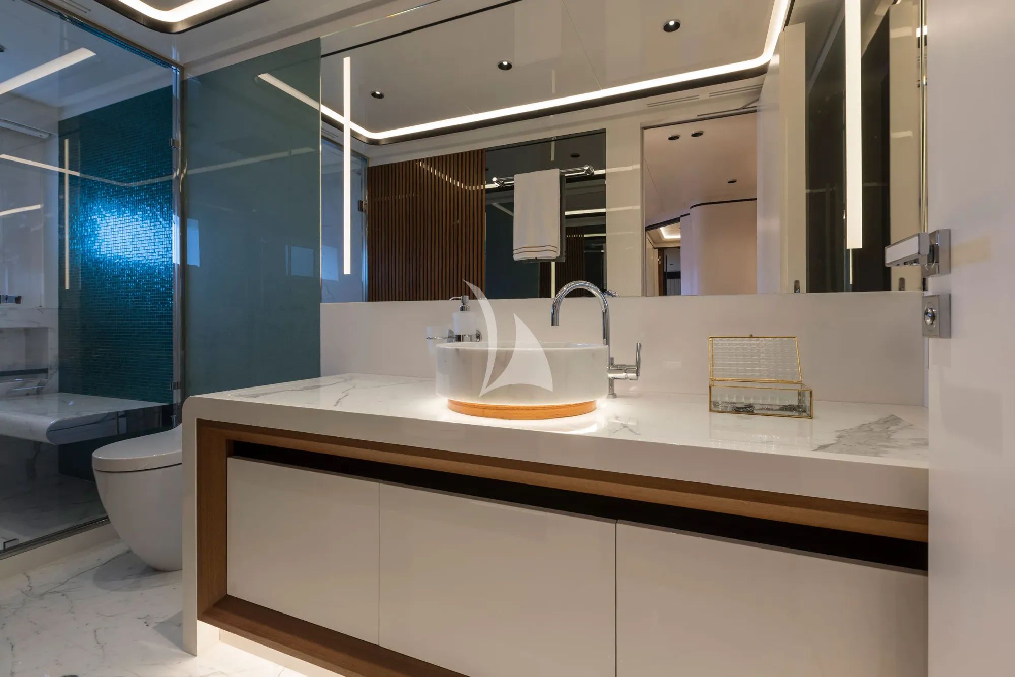Step inside MAVERICK and be captivated by her sumptuous interiors. The radiant saloon, sophisticated sky lounge, and refined indoor dining area provide the perfect setting for hosting memorable celebrations. Her luxurious cabins, each with a private en-suite bathroom, are adorned with exquisite gray accents, stylish glass fixtures, and premium fabrics, delivering a six-star ambiance of comfort and indulgence that ensures every moment of your stay is exceptional.
