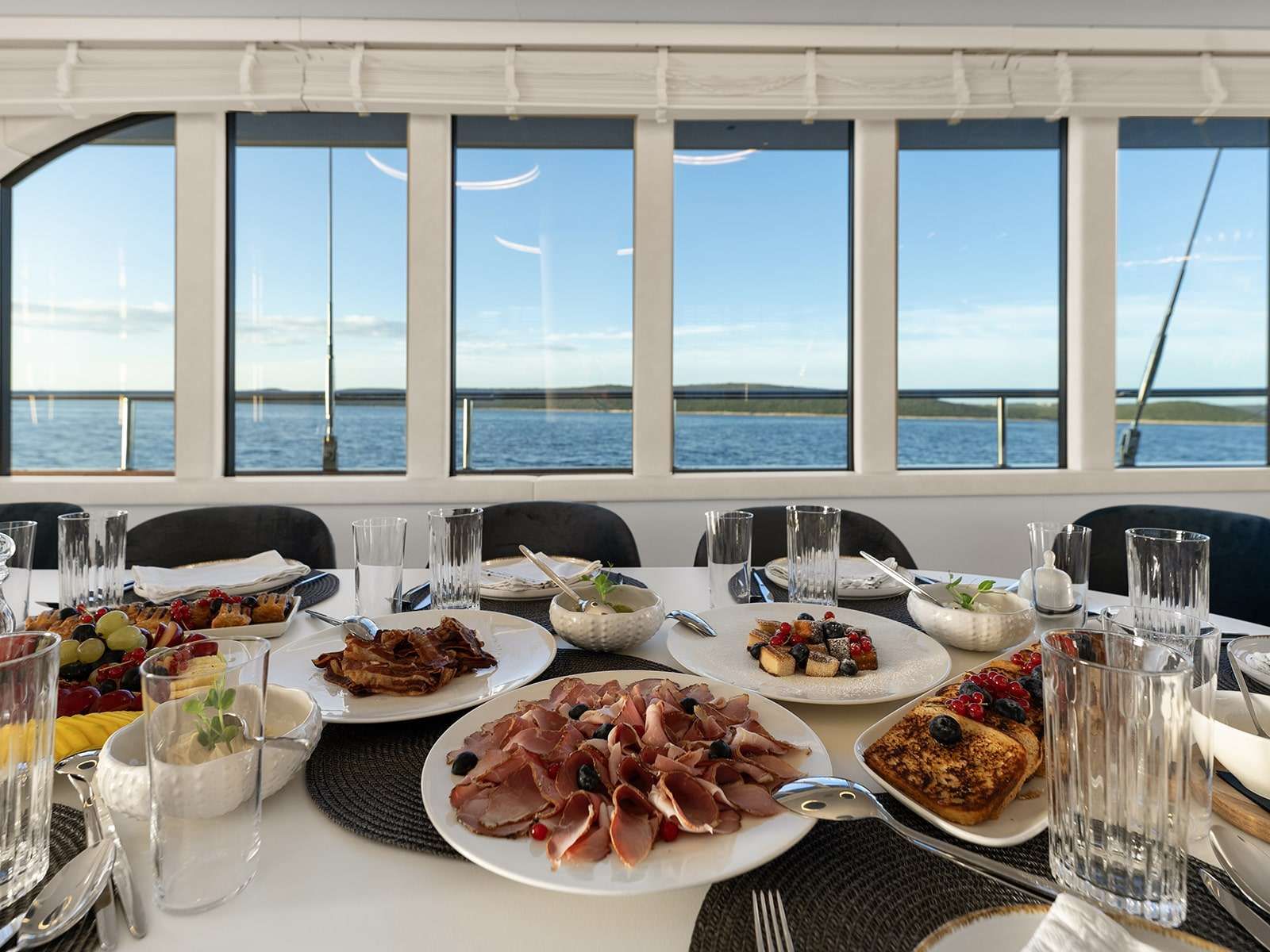 Morning begins on the sundeck, where the light spills over Dubrovnik’s terracotta rooftops and the horizon glows in shades of gold. Settle into the cushioned lounge with a glass of champagne, drift into laughter with friends, or take a dip in the jacuzzi while the sea sparkles beneath you. When the evening arrives, the stern transforms into your private open-air restaurant, a stage for elegant alfresco dining and golden sunsets. And when night falls, MAXITA’s bar areas come alive, inviting guests to celebrate or unwind beneath the stars.