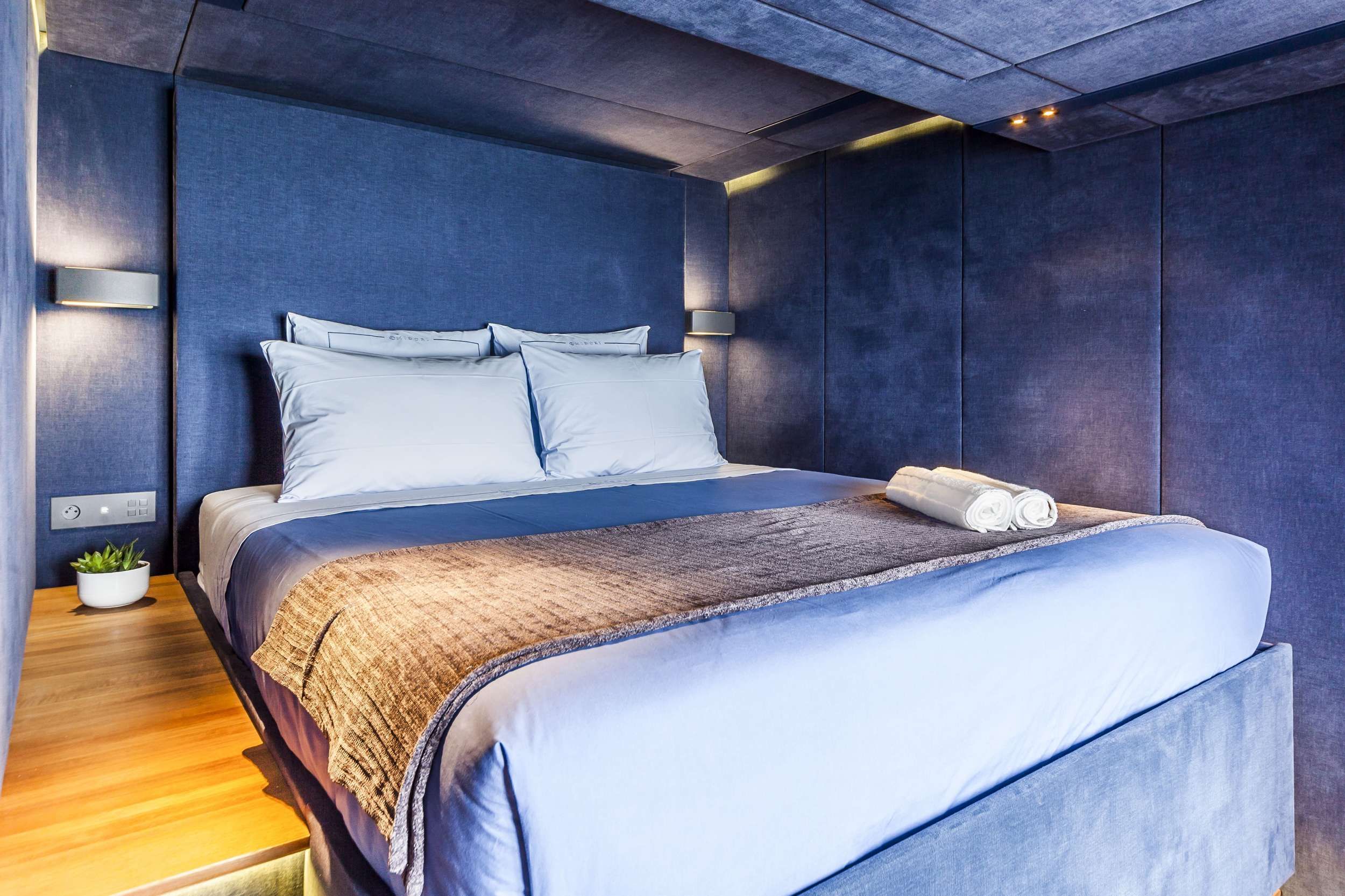 Step inside and explore the contemporary design of the salon. Full-height windows allow guests to enjoy the exceptional view while still staying cool and the ample storage space means you can stow a secret stash away for midnight snacking. Each cabin will be uniquely decorated and comes with its own retractable TV and speakers.