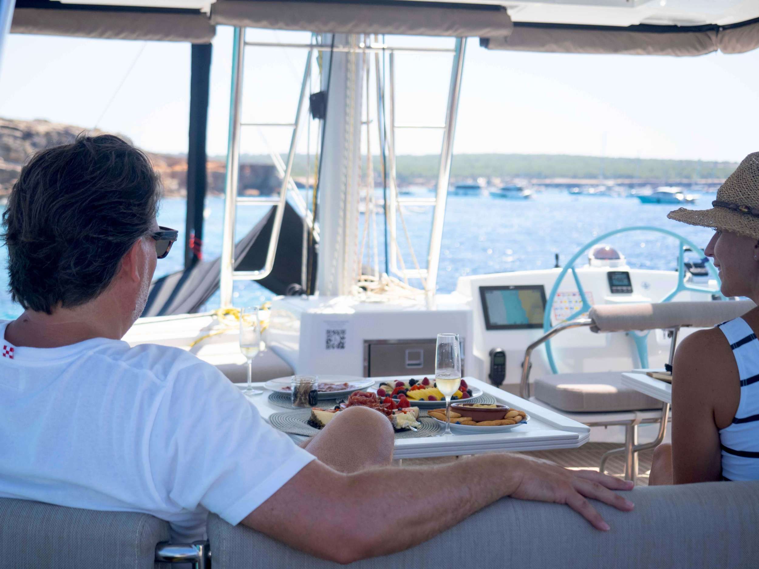 Begin your Balearic adventure aboard the Bali 5.4 crewed catamaran MIM OCEAN 1, setting off from the cosmopolitan shores of Sant Antoni, Ibiza. Here, sea meets style as you embark on a week designed around discovery, pleasure, and the art of slow living on the water.