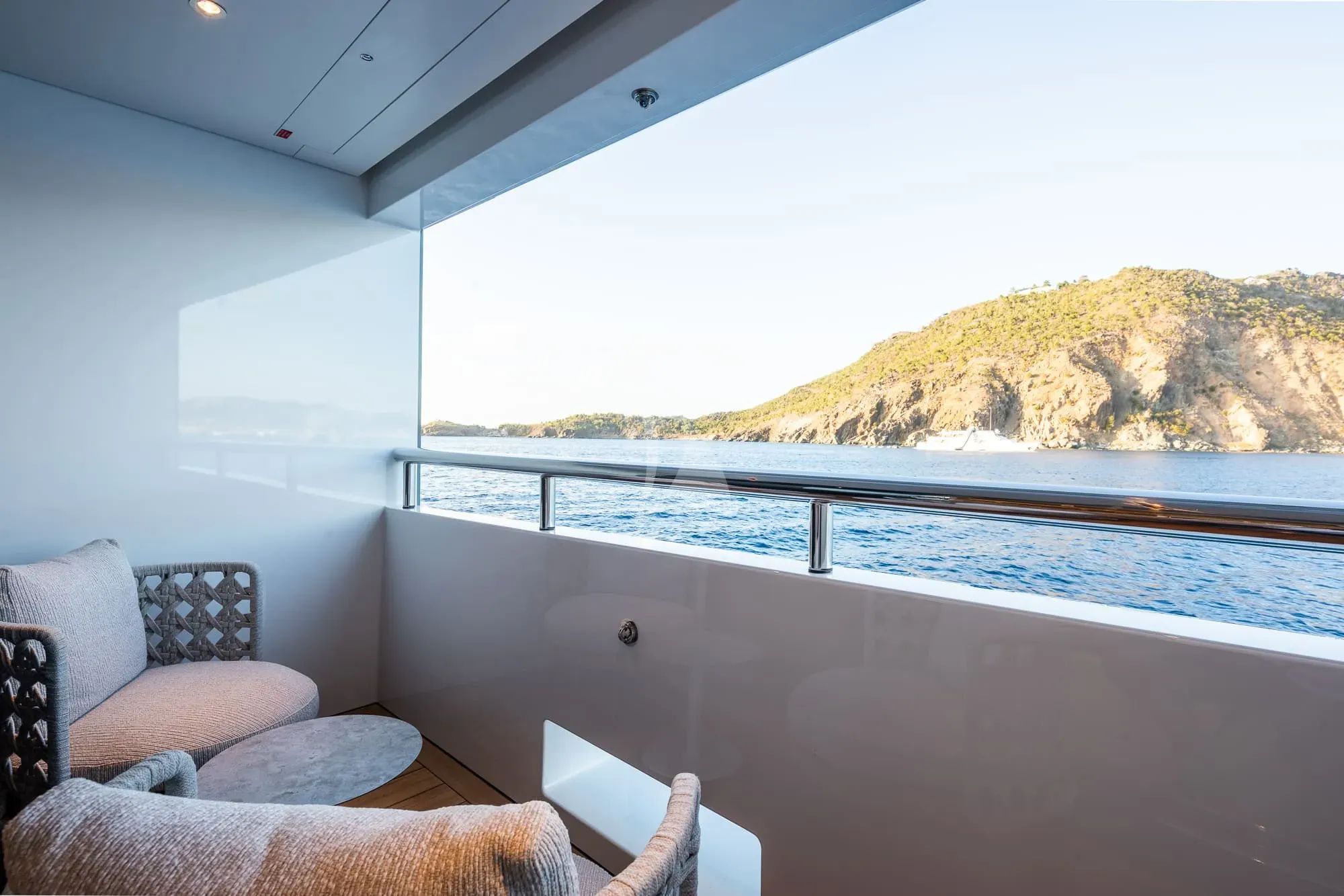 Inside, MINE GAMES enchants with her blend of contemporary sophistication and modern comfort, highlighted by ambient LED lighting and expansive windows that flood the elegant saloon, chic dining area, and fully equipped galley with natural light and uplifting sea views. After a day brimming with adventure and indulgence, retreat to one of her premium staterooms, each featuring a luxurious ensuite bathroom, ensuring restful nights and rejuvenated mornings.