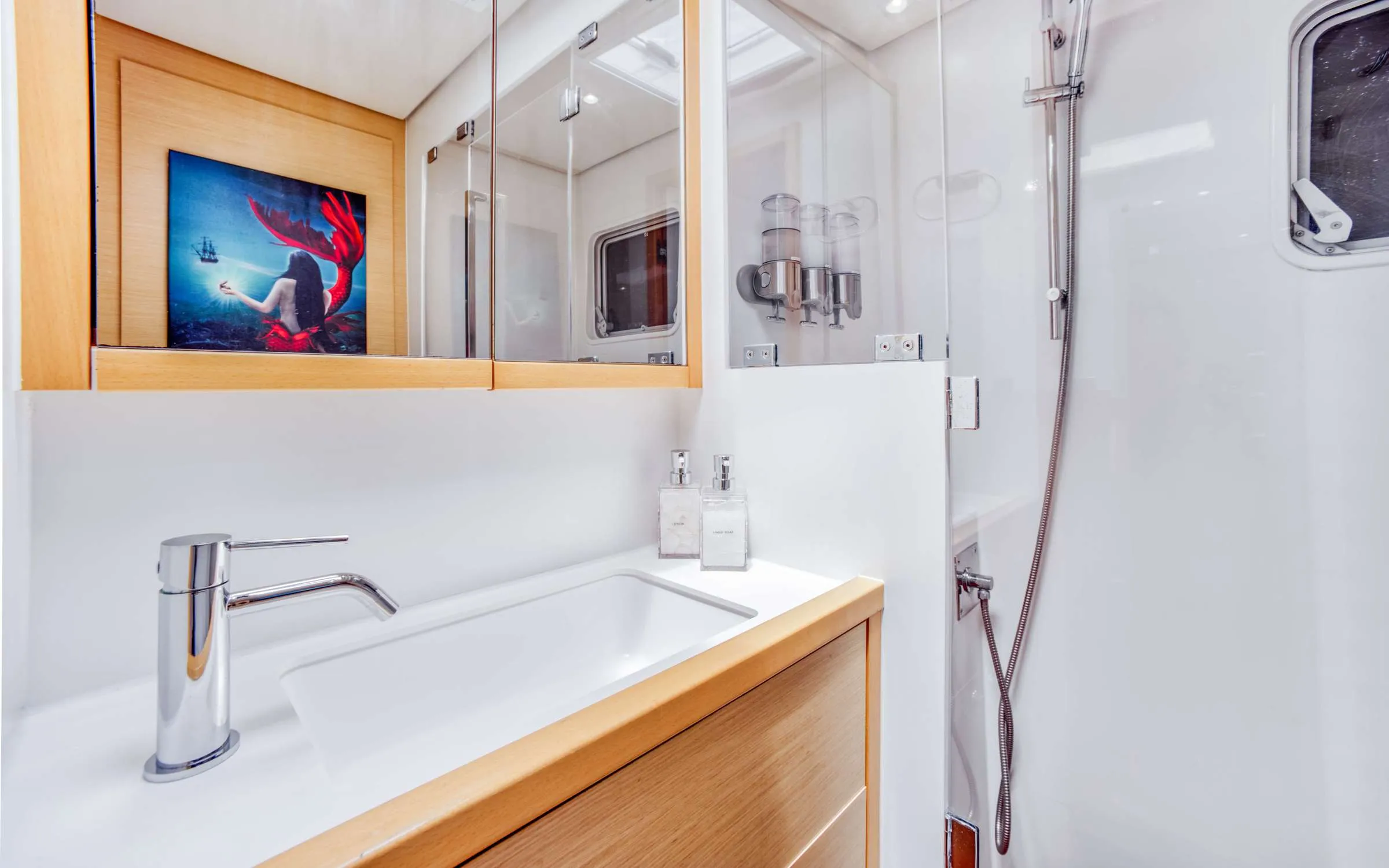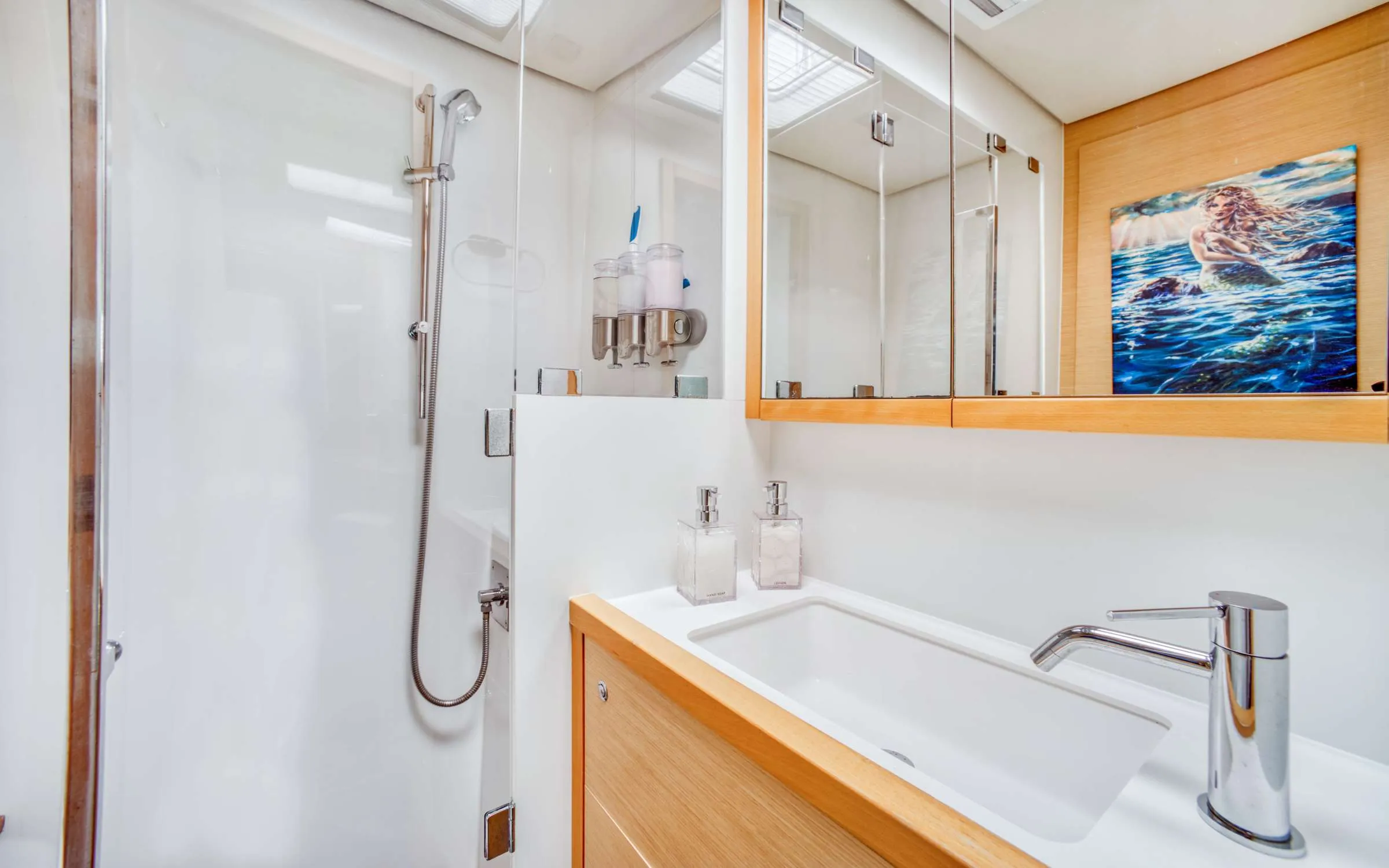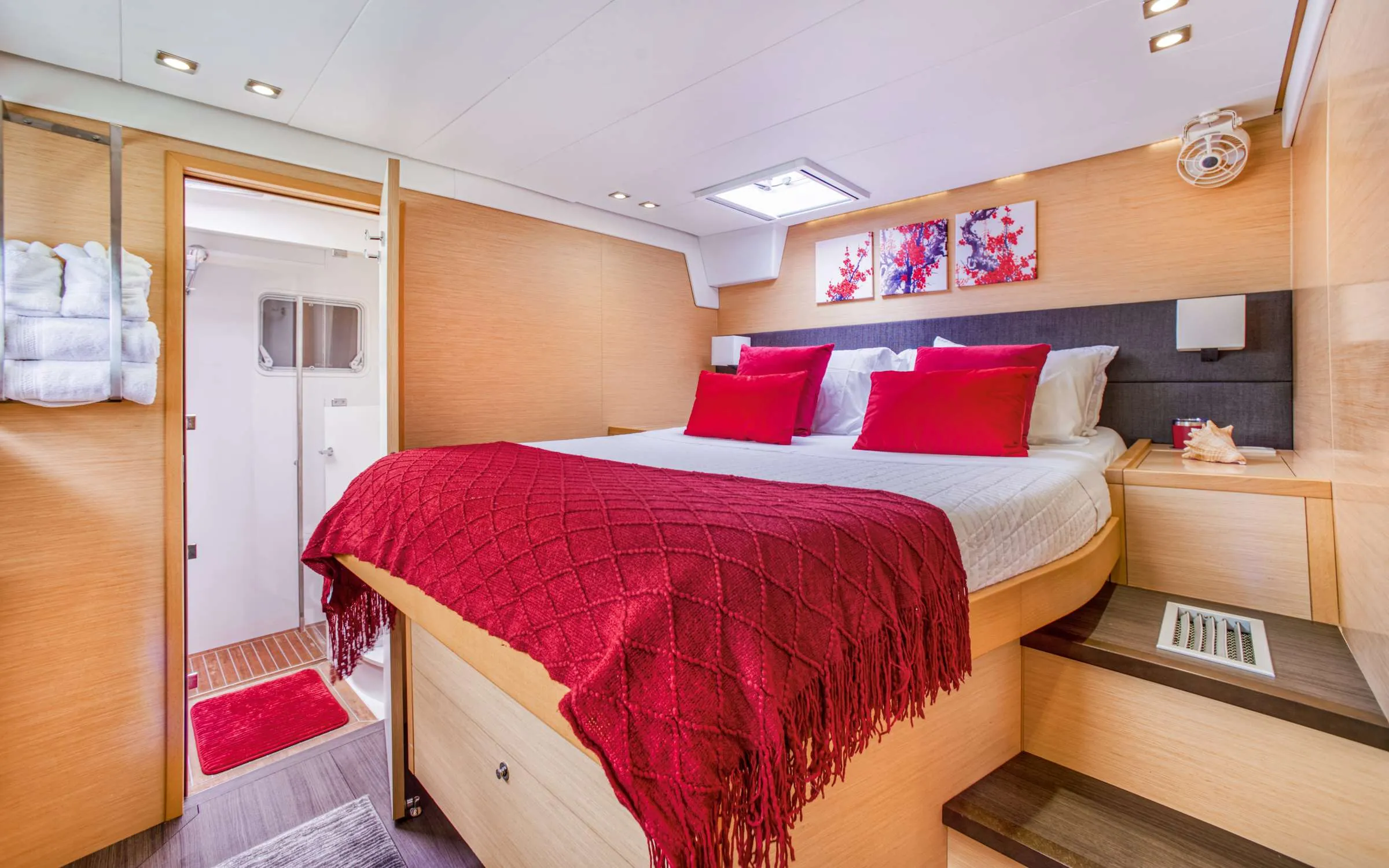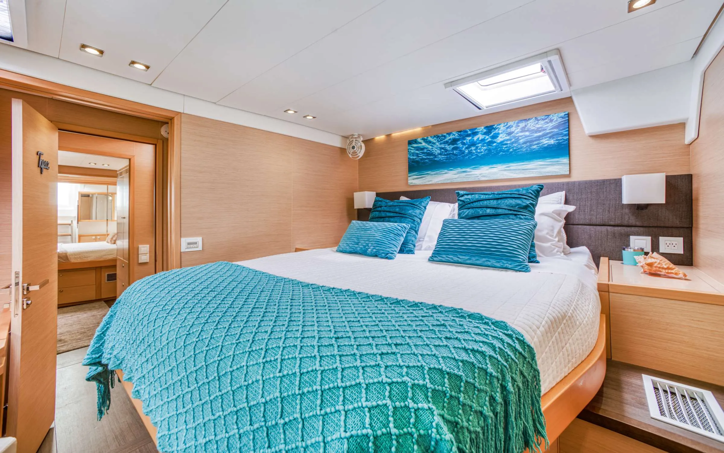 The streamlined elegance of the Lagoon 560, MIRA SOL, cuts flawlessly through the Caribbean waters, providing guests with a steady sail through the BVI. Her all white exterior was made to stand out as she commands the waters, finding the perfect balance of awe-inspiring luxury and endless comfort.