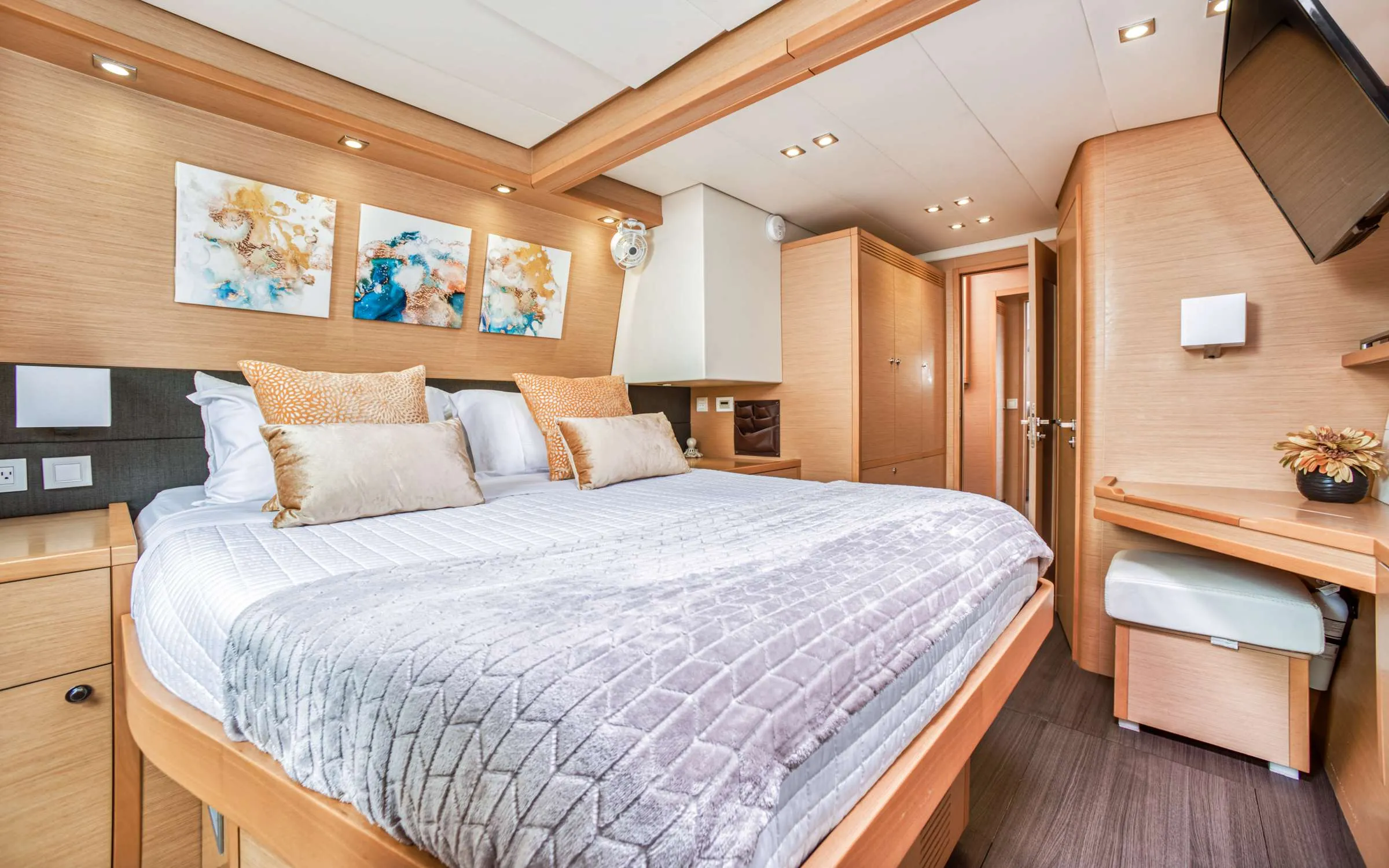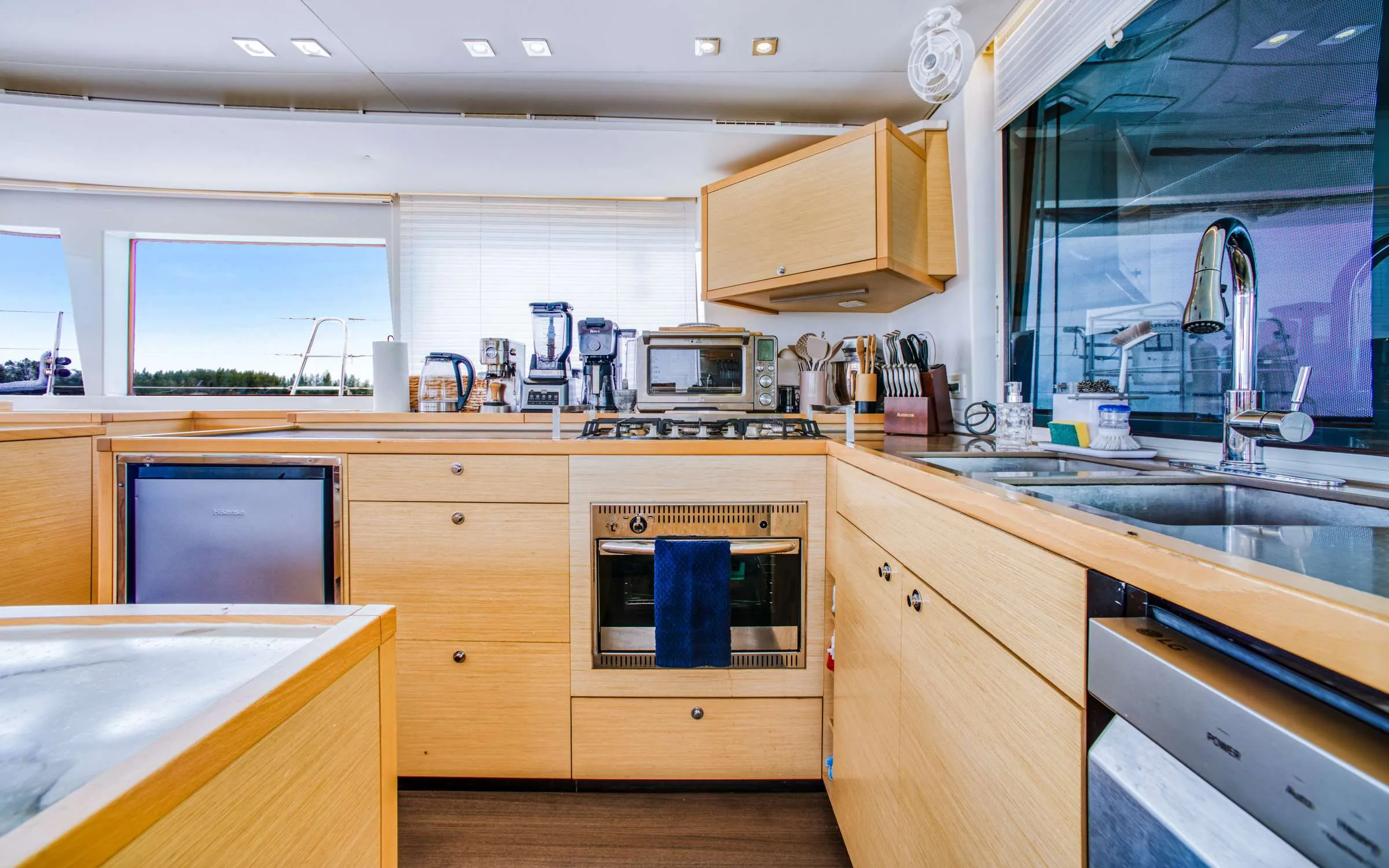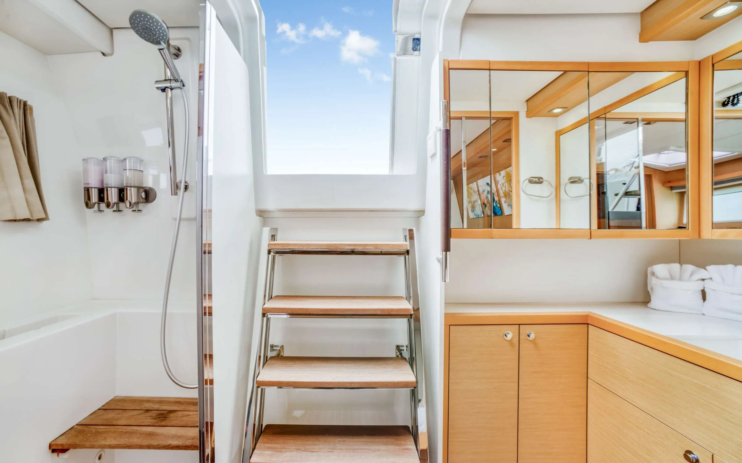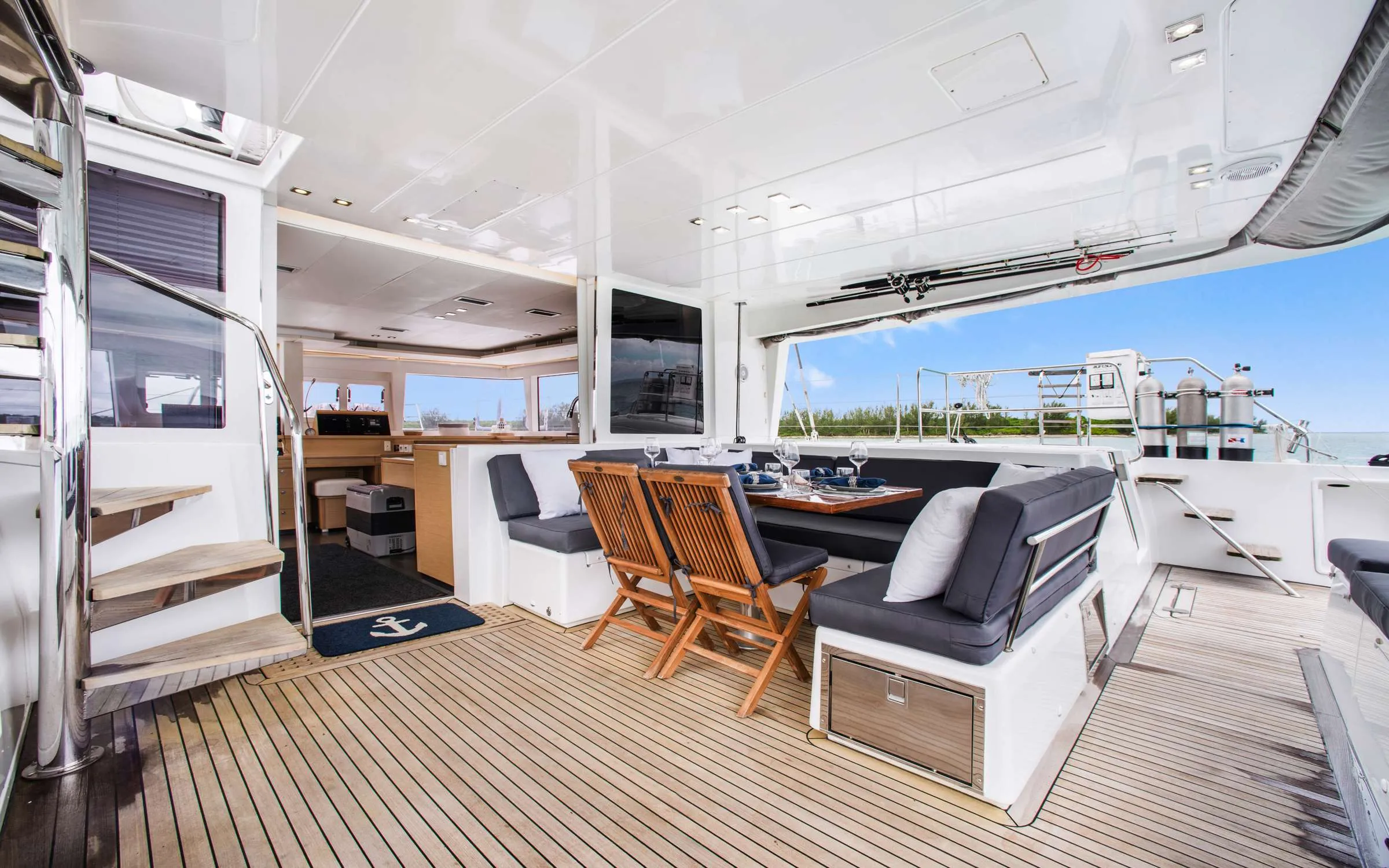 The streamlined elegance of the Lagoon 560, MIRA SOL, cuts flawlessly through the Caribbean waters, providing guests with a steady sail through the BVI. Her all white exterior was made to stand out as she commands the waters, finding the perfect balance of awe-inspiring luxury and endless comfort.
