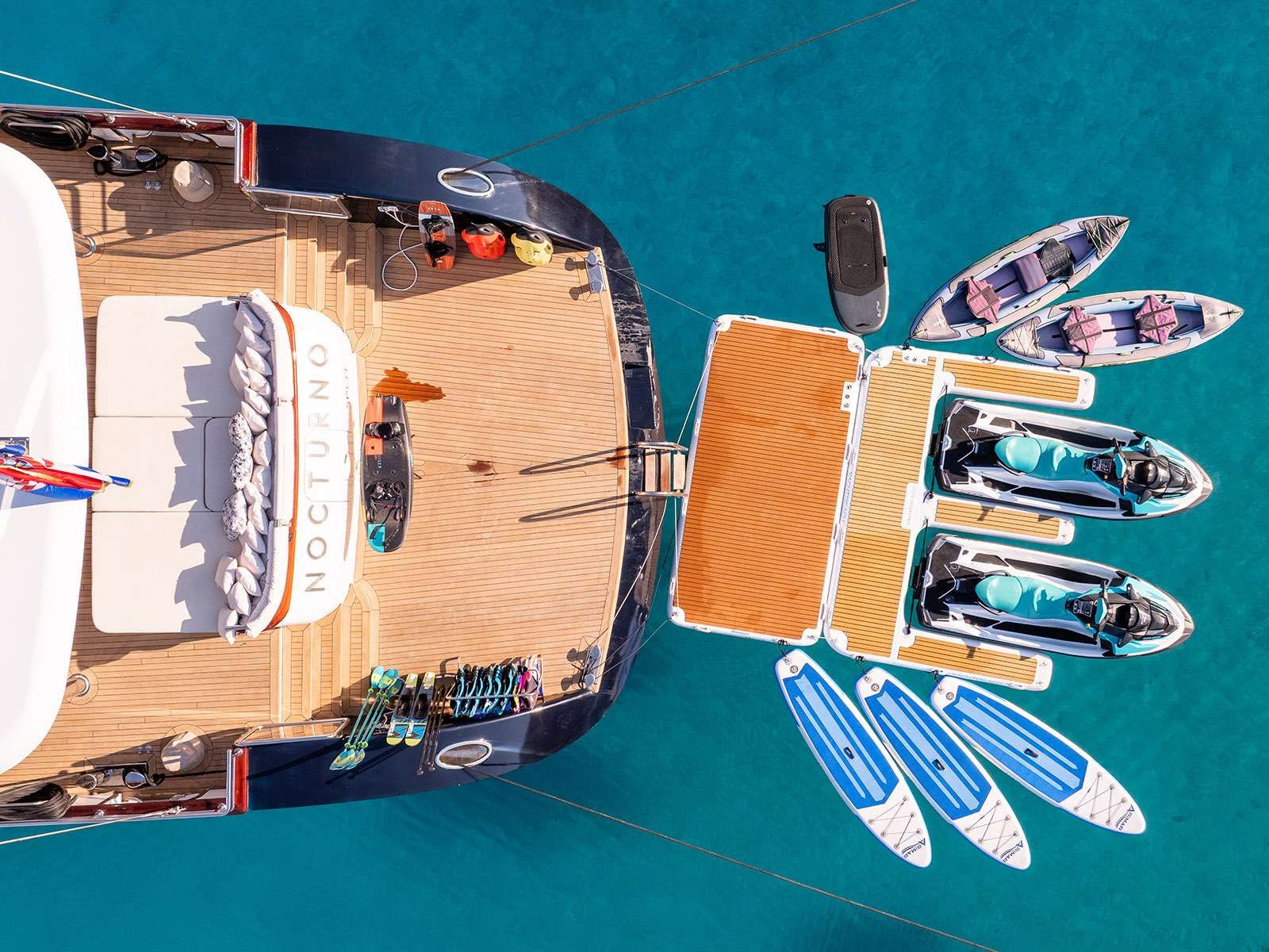 Your charter would not be complete without a touch of thrill. Spend afternoons at the region’s renowned Dalmatian beach clubs, or explore the underwater wonders of Vis using the yacht’s array of water toys. From high-energy rides to tranquil swims, every moment is designed to awaken your sense of adventure and joy.