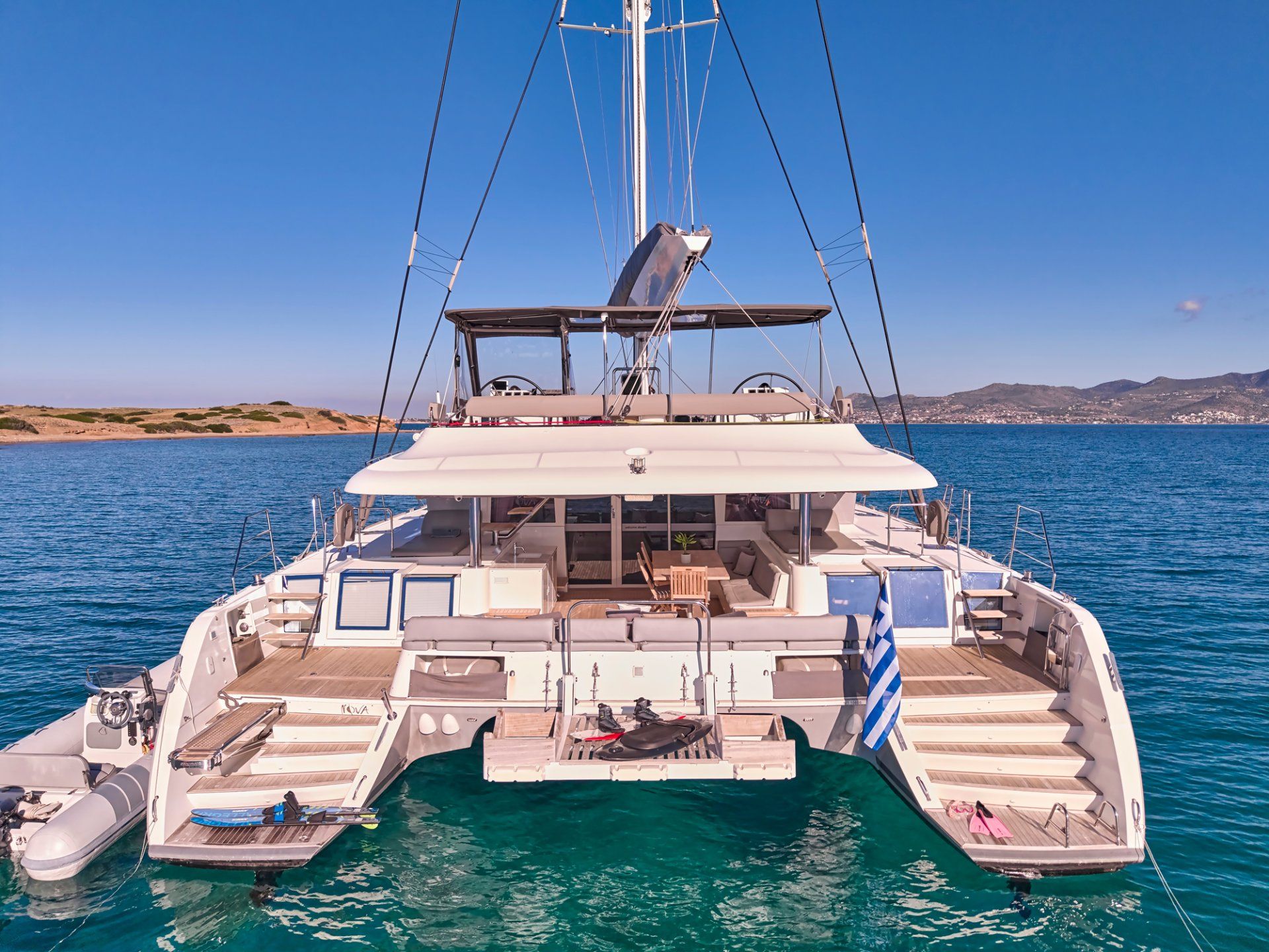 The breathtaking Lagoon 620 luxury crewed catamaran NOVA glides effortlessly across the legendary waters of Greece, blending the grace of sailing with the power of her engines for a seamless cruising experience. Designed for socializing, relaxation, and adventure, NOVA offers state-of-the-art amenities and expansive living spaces, comfortably accommodating up to 8 guests for an unforgettable charter.