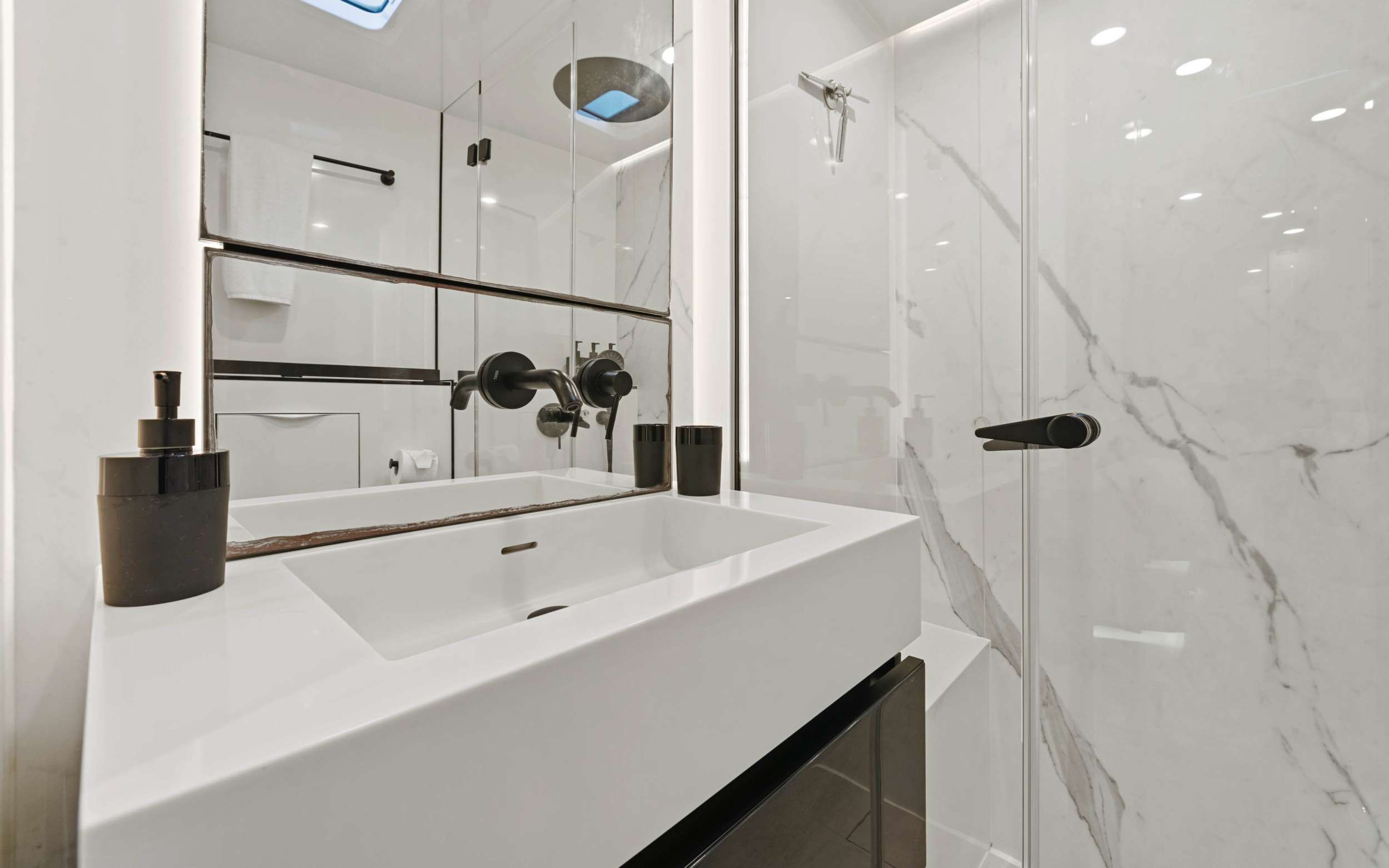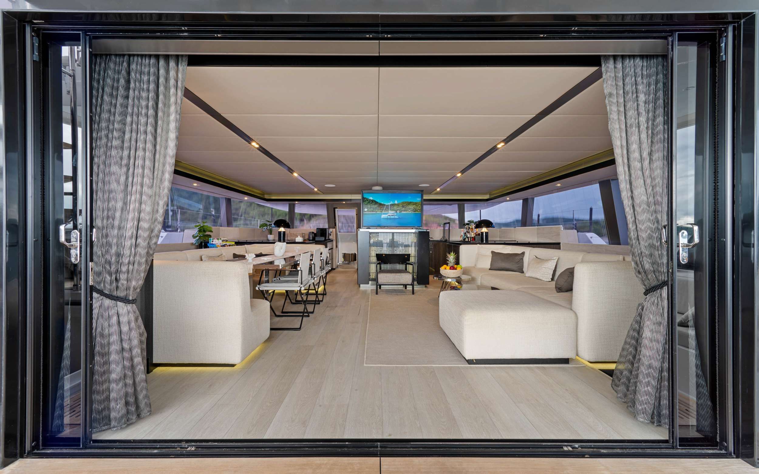 Inside, OCEAN VIBES reveals a chic interior adorned with soft tones and open spaces. Her modern saloon provides the perfect gathering spot for conversation and dining, while each cabin offers privacy, elegance, and a tranquil escape. Wake to the sound of gentle waves and the promise of new adventures ahead.