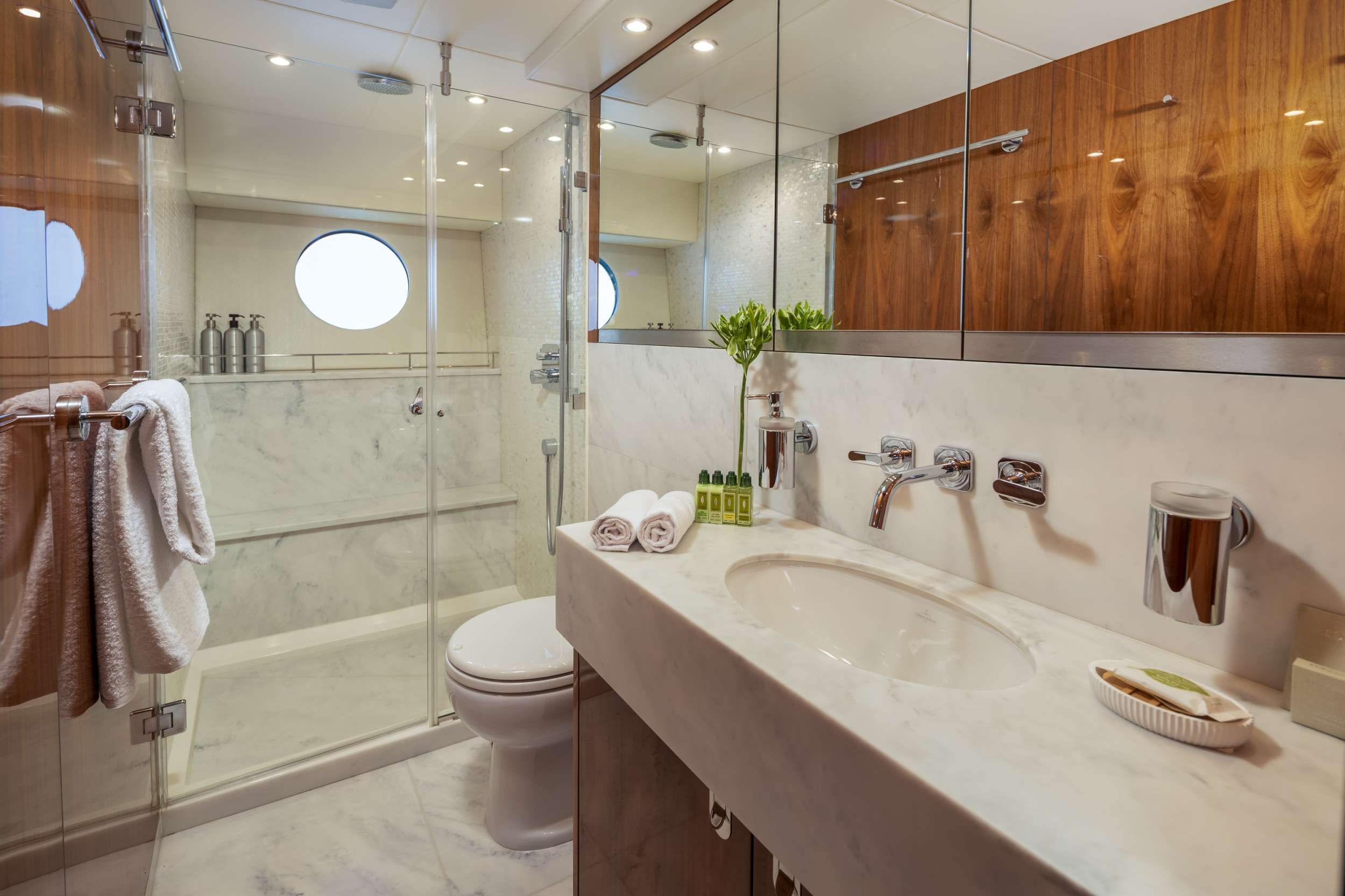 OPAL ADRIATIC's interior reveals an ambiance of understated sophistication. The saloon and dining area glow with natural light filtering through expansive windows, creating a sense of openness and serenity. Her cabins, adorned with elegant teak and neutral fabrics, provide comfort that lingers long after sunset, ensuring you wake each morning rejuvenated for discoveries.