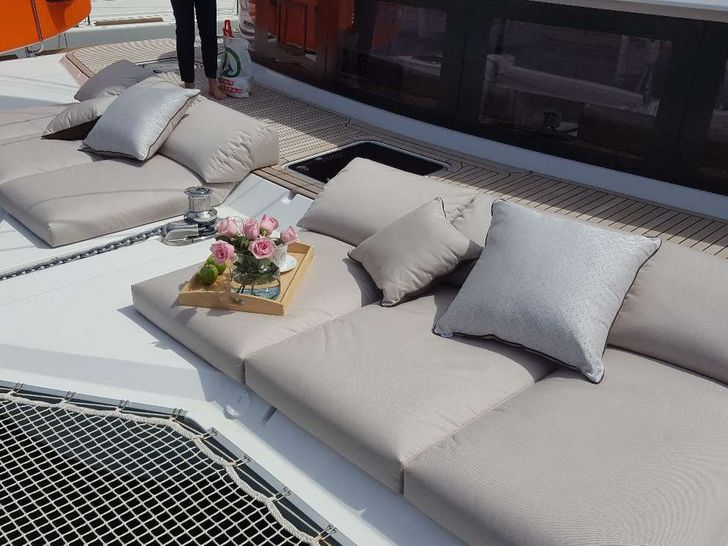 OPAL Lagoon 620 - foredeck lounge and net trampoline