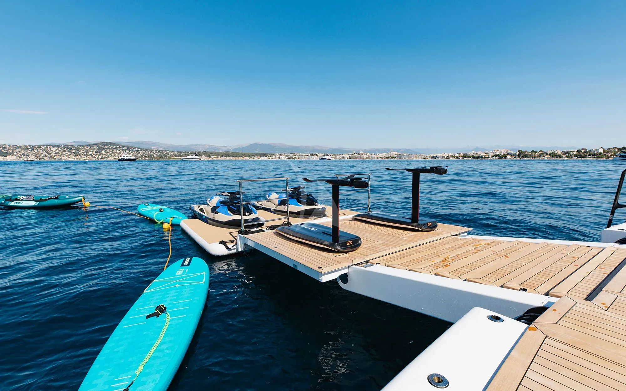 The use of all personal watercraft, including jet skis, is permitted only if the operator holds the appropriate license and complies with local operating regulations. In the Mediterranean, we recommend that all guests interested in obtaining an RYA Personal Water Craft (PWC) license use the water toys onboard safely.