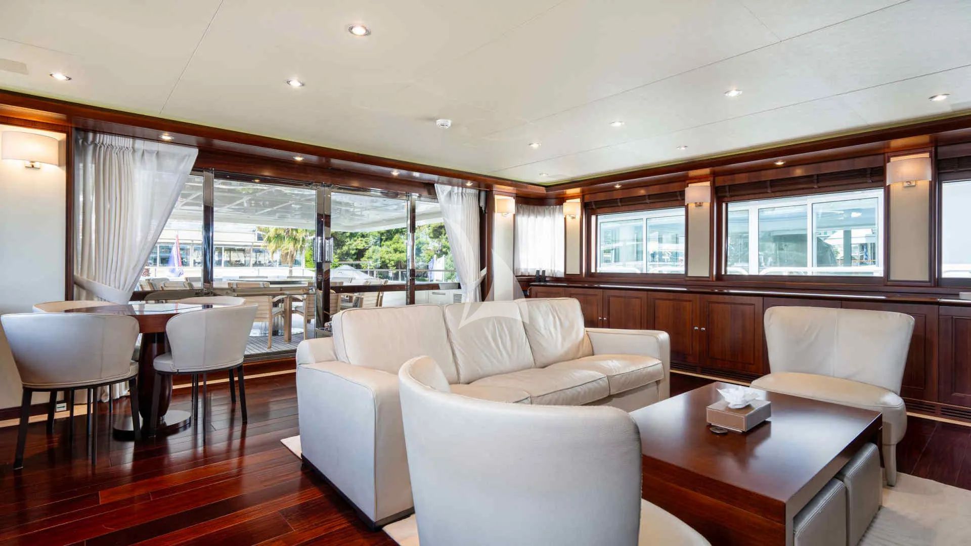 Each morning begins with its own quiet appeal, from a delightful breakfast to time spent basking on plush sun beds as the Greek open sea stretches endlessly ahead. PALATIAL makes these slower parts of the day feel just as memorable as the more active ones, giving guests space to enjoy the destination at their own pace. Indoors, the yacht’s spacious interior blends modern and contemporary design with a softness that keeps everything feeling inviting rather than formal. Massive glass windows wrap each area in natural light, creating a bright and uplifting atmosphere across the main living spaces.