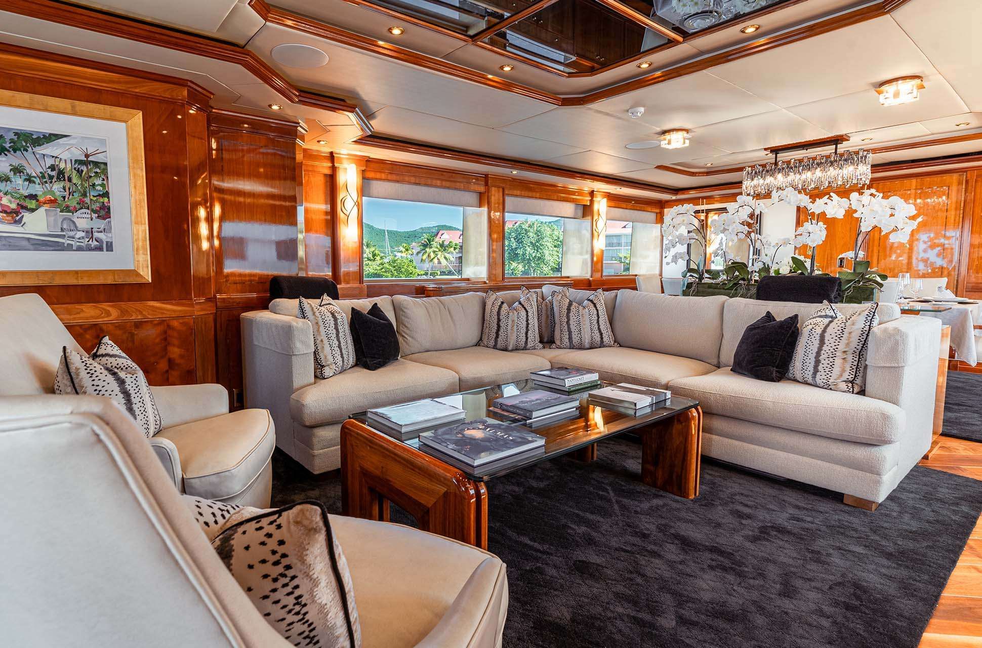 She can accommodate 8 guests, featuring a very beautiful appointed Master Stateroom on the Main Deck, with a full beam VIP stateroom below along with two additional queen bed staterooms.
