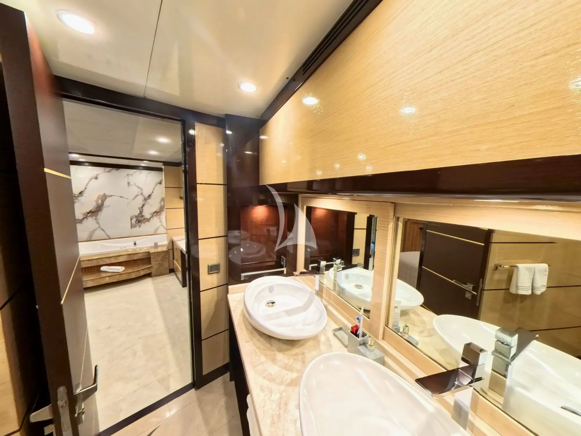 Step into her opulent interior, a harmonious blend of contemporary aesthetics and rich teak finishes, adorned with premium fabrics and pristine white linens to create an air of sophistication. Her spacious cabins are designed to provide ultimate comfort, featuring private ensuite facilities and entertainment systems, making them a serene retreat after an exhilarating day of adventures on the water. Wake up rejuvenated, ready to embrace another day of discovery and enjoyment.