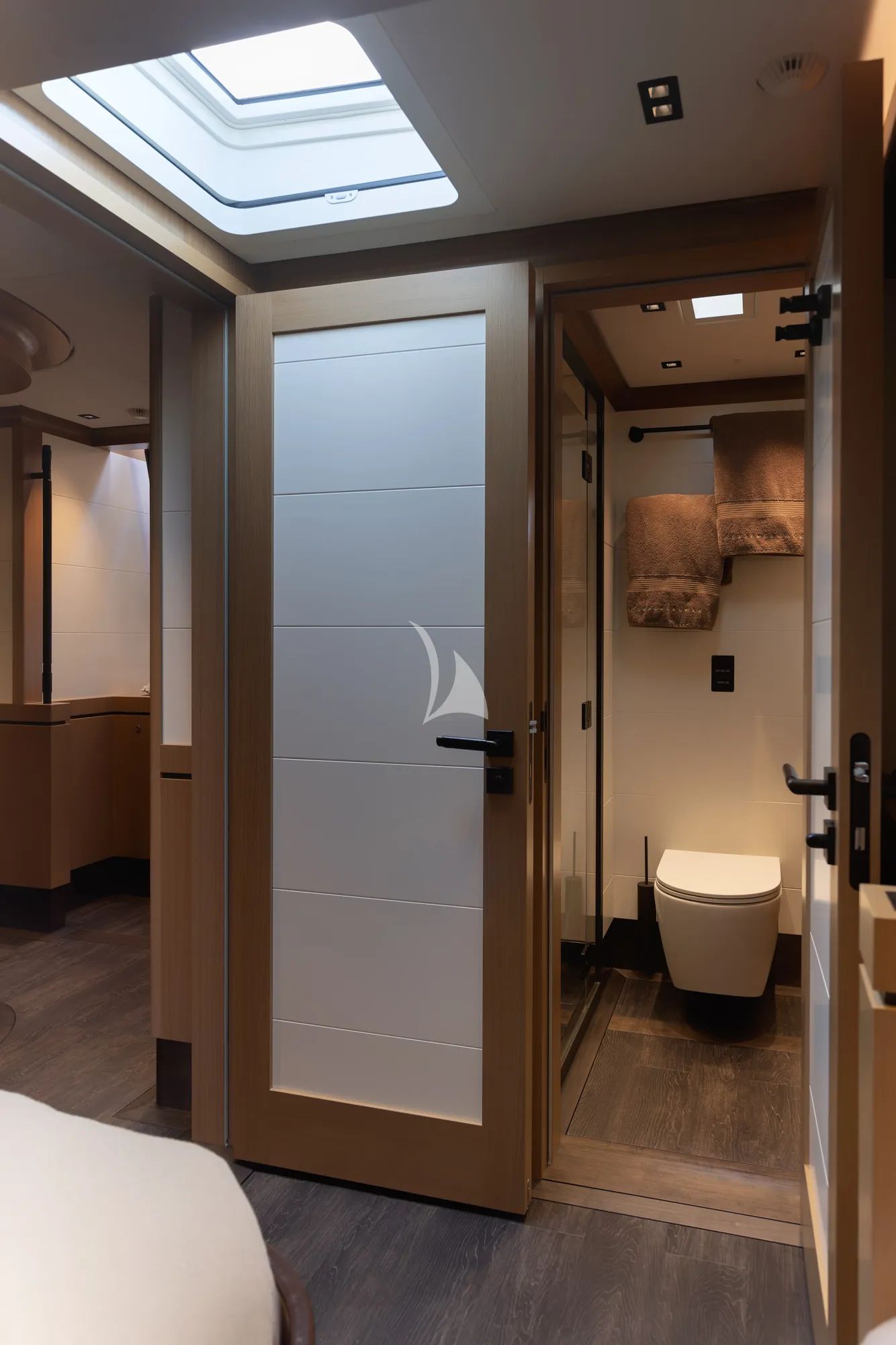 Inside, the look is bright and modern, finished in light tones with stained oak and bespoke details that keep everything calm, clean, and inviting. The saloon is your comfortable indoor hub for cooling off, enjoying a film, or sharing a quiet drink as the yacht settles into the evening. PERSEVERANCE 1 welcomes up to 8 guests in 4 cabins, including a forward owner’s suite filled with natural light, plus a VIP cabin, a twin cabin, and a bunk cabin that works beautifully for families or groups. The cabins are designed to be energy-smart, meaning they automatically reduce electricity use when no one is inside, keeping the yacht considerate without changing your comfort.