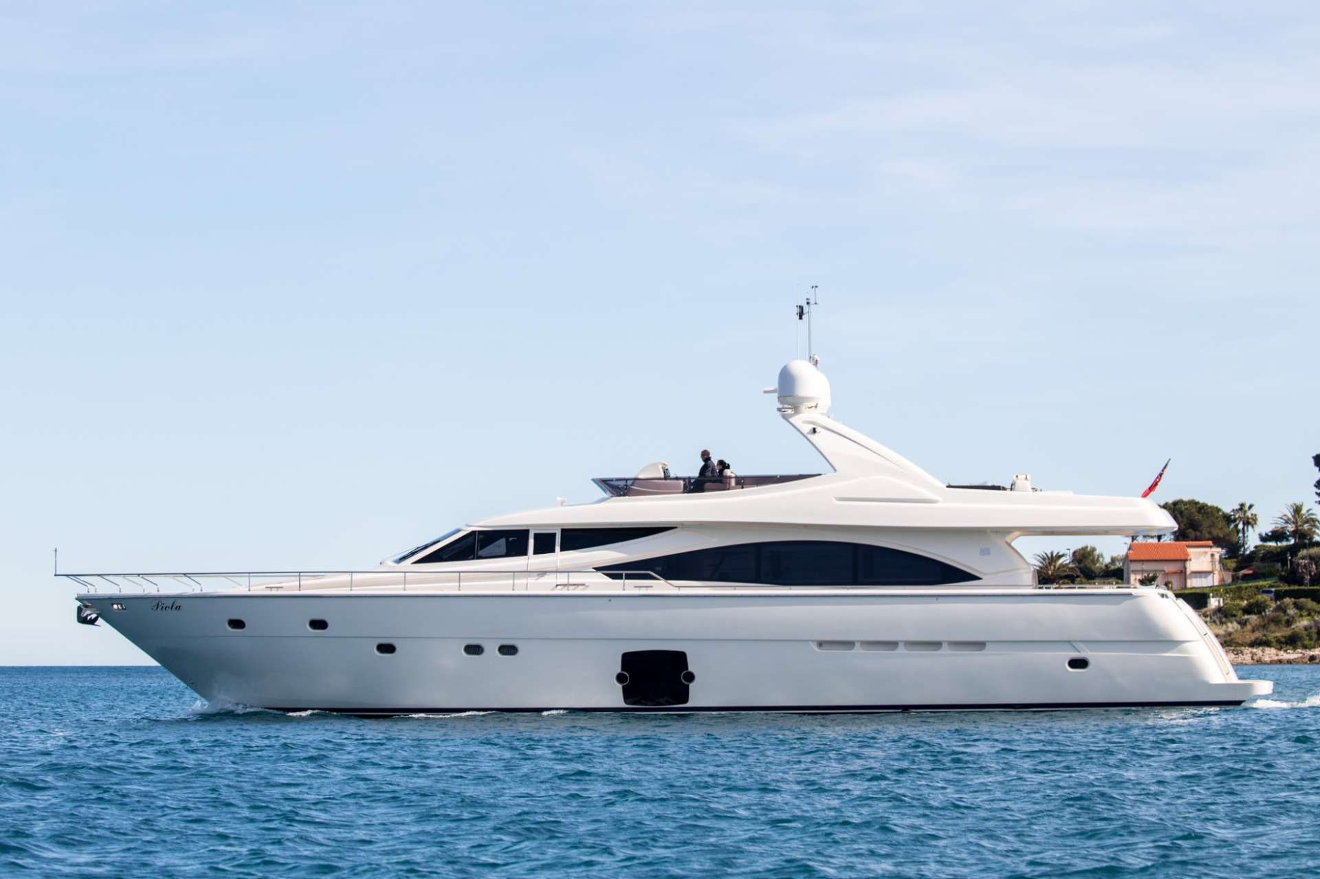 The Ferretti 830 crewed motor yacht PIOLA transforms island-hopping into pure Mediterranean artistry, elevated by the comfort of her 4 cabins for 9 guests.Your Charter Crew: