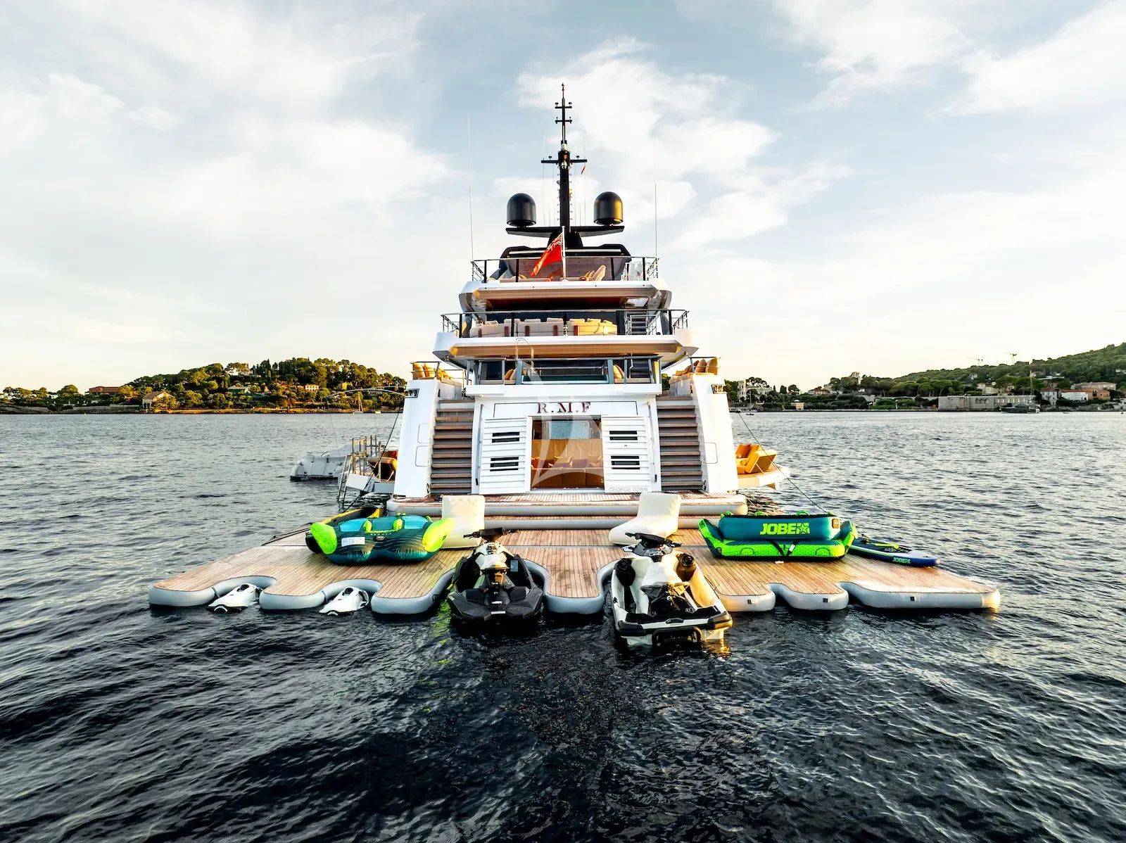 The breathtaking Sanlorenzo 52Steel luxury crewed motor yacht RMF boasts a sleek, cutting-edge design that exudes modern elegance, perfectly crafted for smooth, effortless cruising along the glamorous French Riviera. Step aboard and immerse yourself in her world-class amenities for recreation, relaxation, and socialization, featuring an onboard pool, stylish beach club, and an exciting collection of water toys, everything you need for an unforgettable charter experience.
