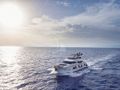 Her interior is modern yet cozy with beautiful wooden furnishing and soft-cream coloured accessories. A big al-fresco dining area is available that can comfortably seat up to 10 guests. On the flybridge, guests can dine at the L-shaped sofa and raised table or use the area for unwinding. A forward bar will provide refreshments throughout the day, while a canvas awning will shade from the midday heat. The central section is left clear and can be used for exercise such as yoga or Tai Chi. On the bow, guests have a large sun-pad to stretch out on and take in the sweeping forward views.