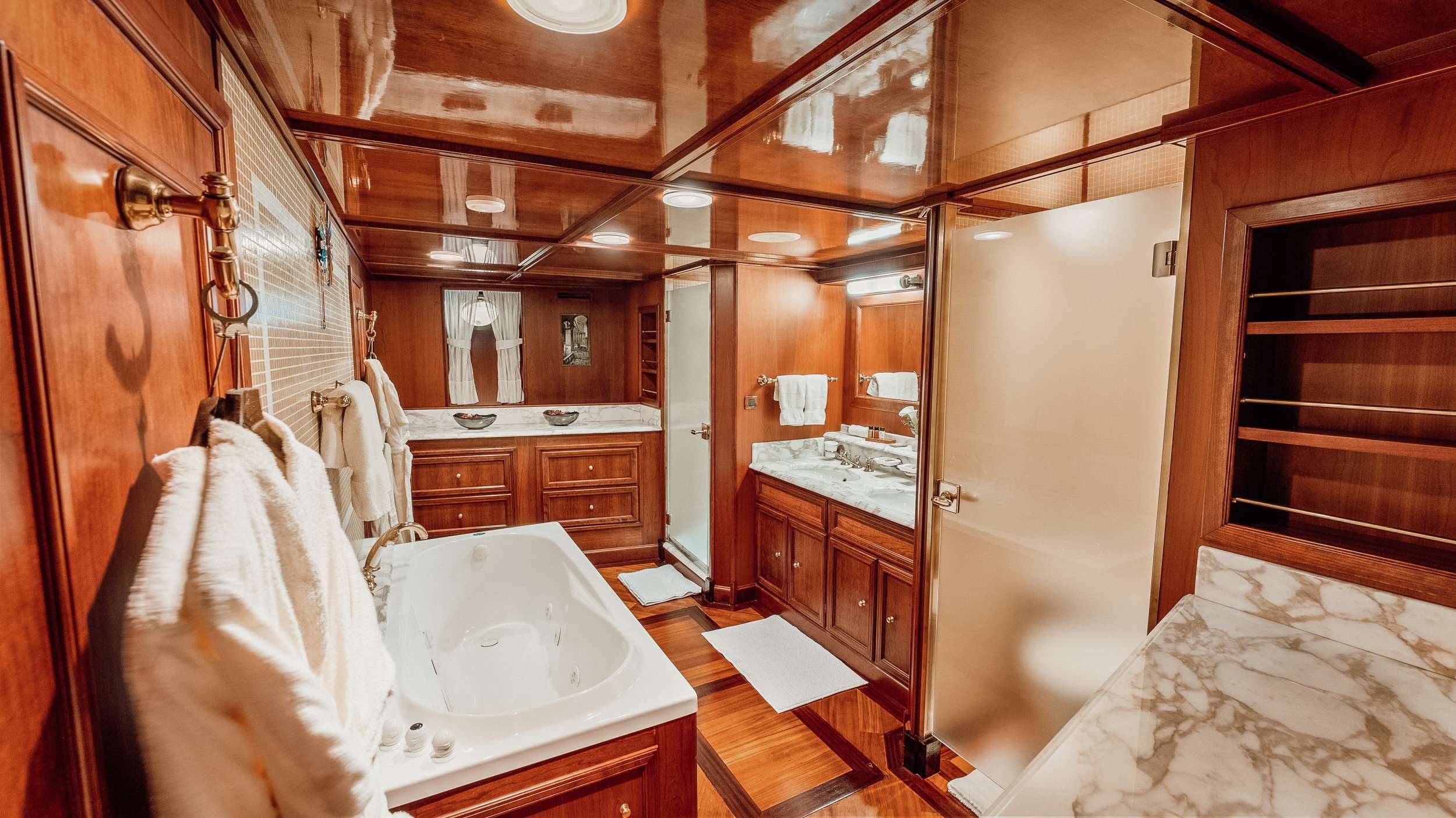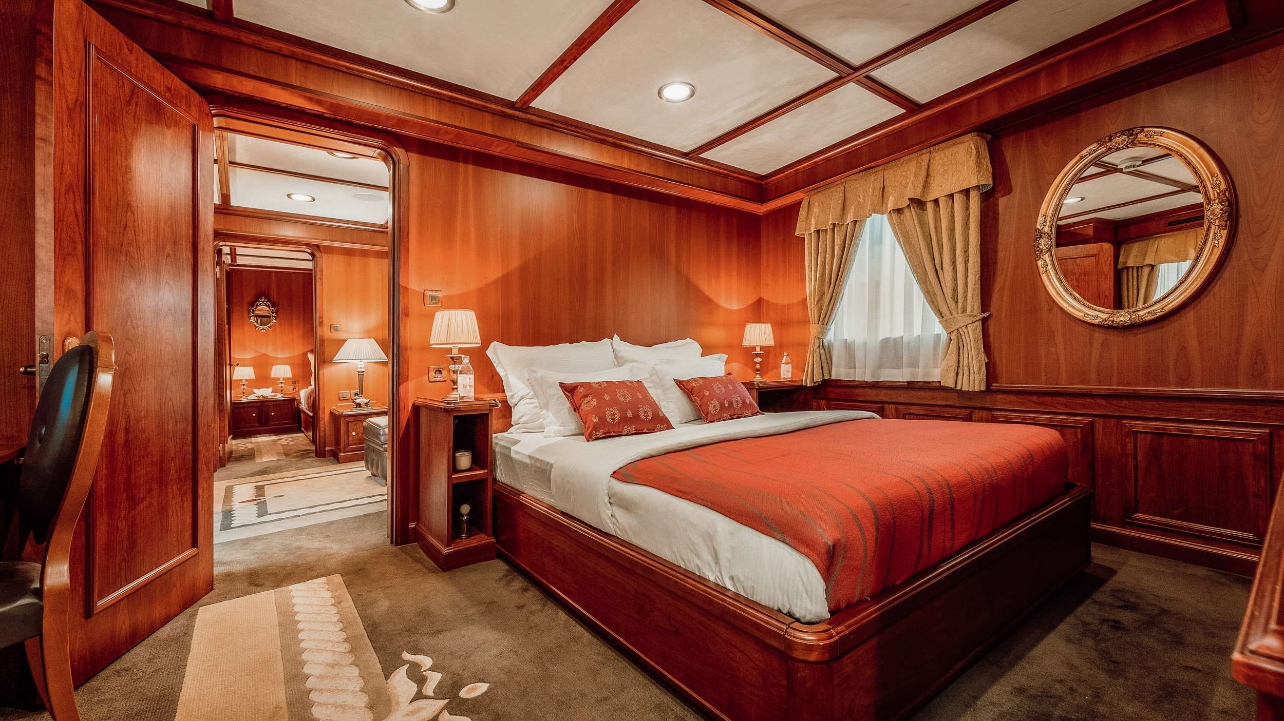 Inside, SEAGULL II welcomes you with an atmosphere of understated grandeur. Her teak interiors and classic detailing evoke the romance of another era, while the sweeping windows fill each room with warm natural light. Retreat to her spacious cabins, each featuring a private ensuite bathroom, where tranquility and elegance blend perfectly to recharge you for another day of discovery on the Adriatic.