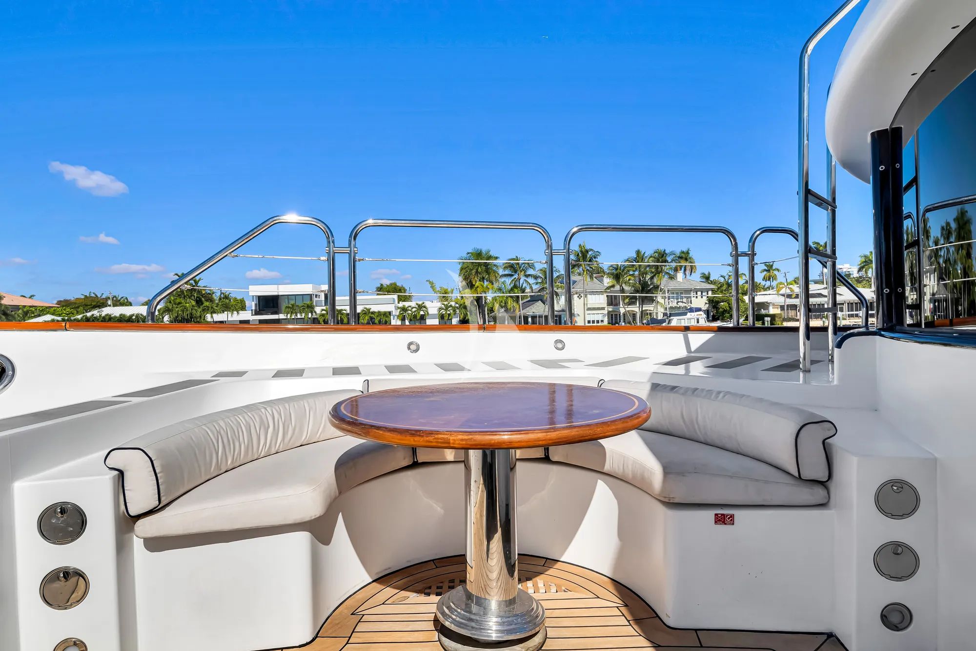 Your day often begins barefoot on the foredeck lounge, greeted by the scent of coffee and the sight of a beautifully presented Bahamian breakfast. Local specialties like Souse and Stewed Conch are served as the sun rises, turning your first meal of the day into part of the adventure. When you are in the mood for slower moments, wander back to her elegant aft deck, where a cozy lounge setup lets you wrap yourself in a shawl, cradle a cup of tea or coffee, and simply watch the sea drift by. As the light softens, the sky deck becomes the center of attention, with an alfresco dining area ready for a seafood-themed dinner while anchored off one of the magnificent islands of the Exumas, followed by time on the sundeck, where panoramic views of Paradise Island, a welcoming bar lounge, Piña Coladas, and a bubbling jacuzzi combine to create evenings you will talk about long after you return home.