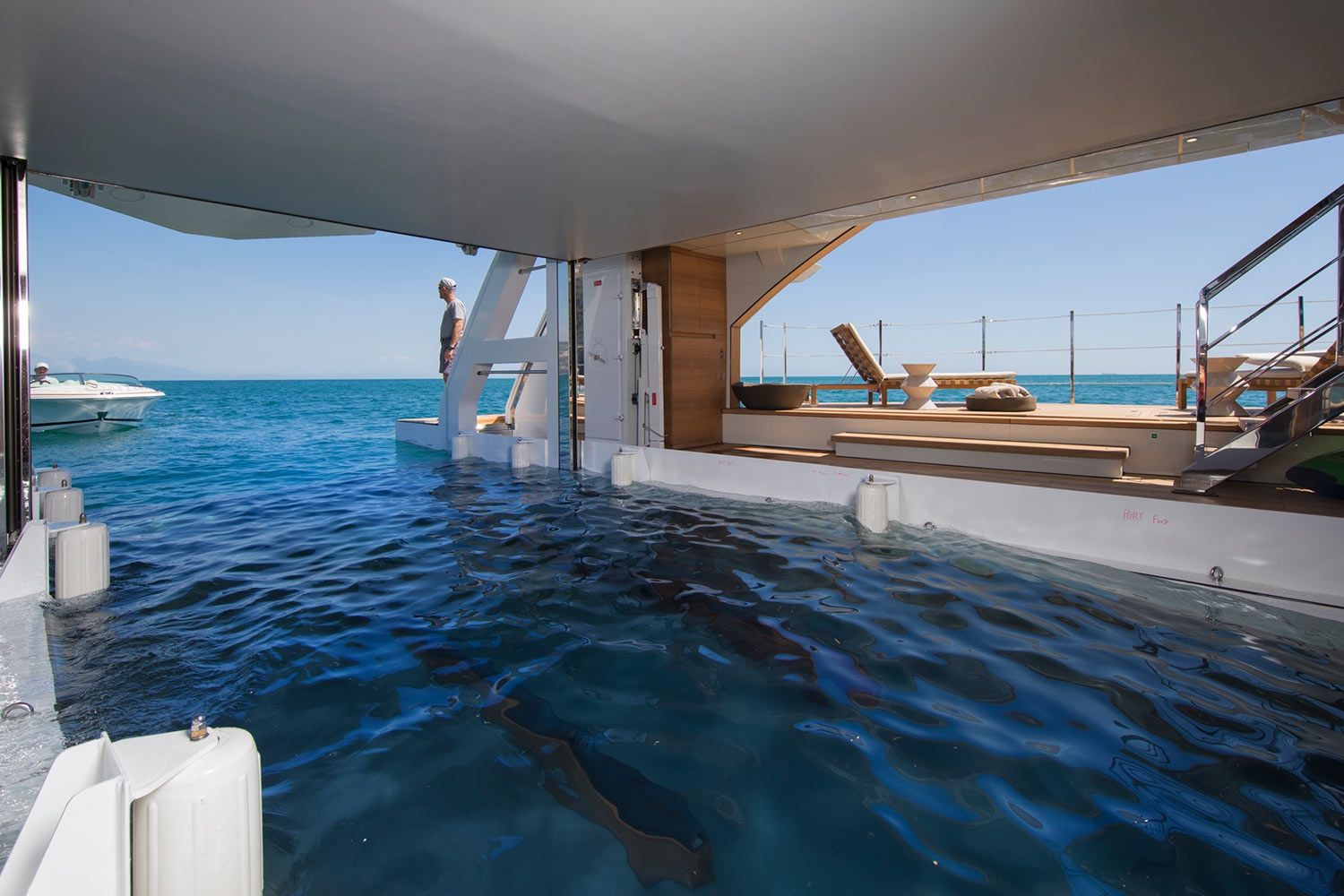 Should you wish to have a charter filled with activities above and below the ocean, SEVEN SINS flaunts all sorts of entertainment. From a top of the range hi-fi system to a private glass bottomed plunge pool, bananas and jet skis, SEVEN SINS and her well trained crew of 9 will ensure you wont even think about breathing a sigh of boredom!