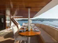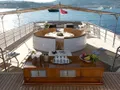 Upper deck with an excellent dining area, a bar, a music sound system, plenty of space for sunbathing and lovely seating areas,