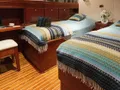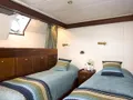 The aft cabins accommodate 8 guests. 2 additional twin cabins, also with en-suite shower and WC facilities, are located forward of the engine room.