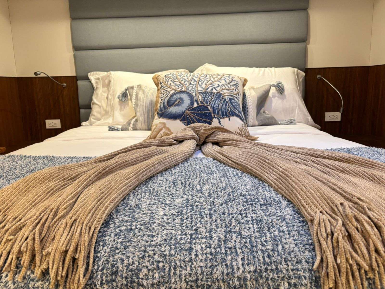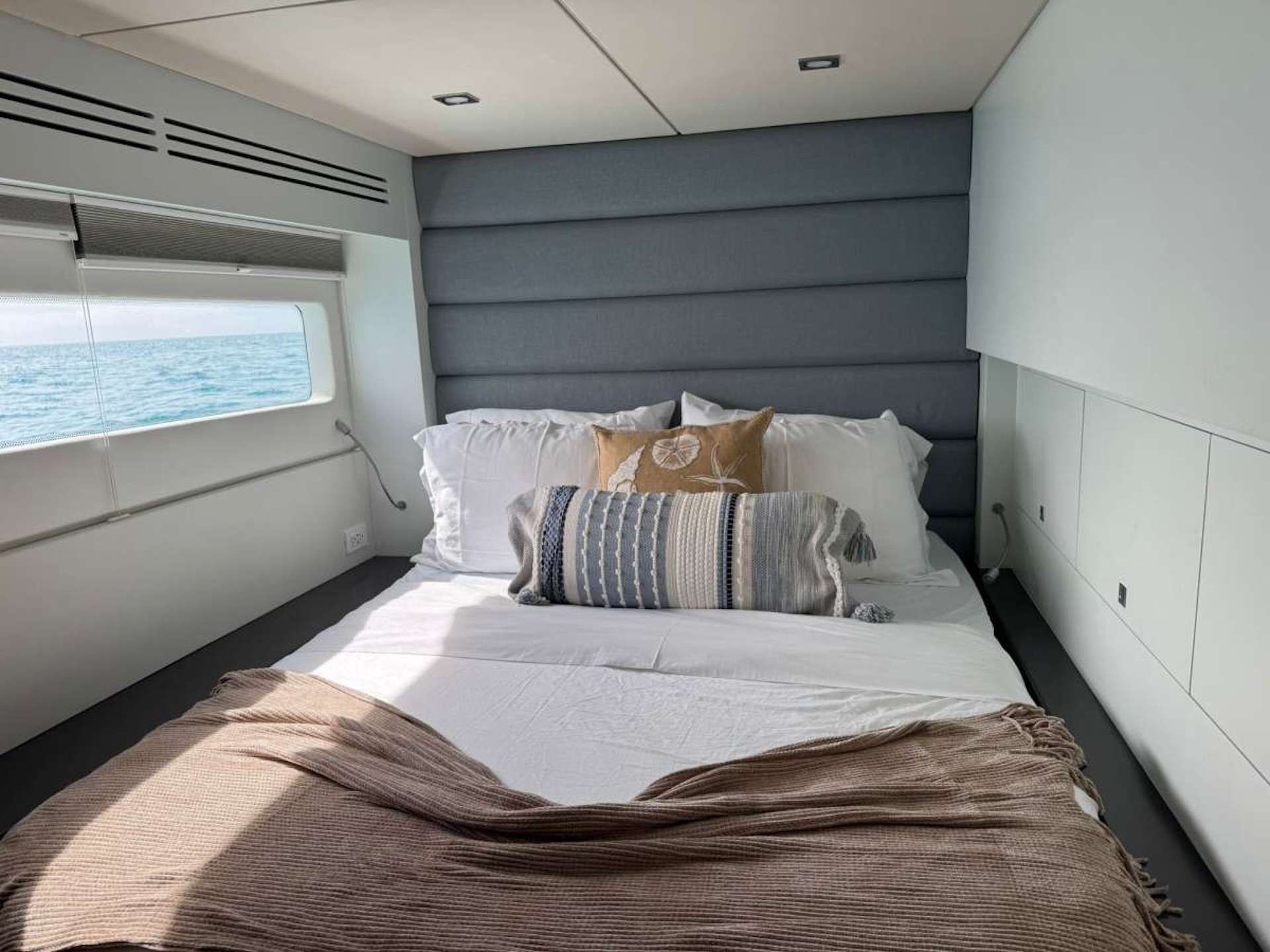 The air-conditioned saloon holds space for unhurried mornings or cozy movie nights. Sink into the plush cushions of the sectional with a cup of coffee before putting on your favorite bathing suit and diving into the waters.
