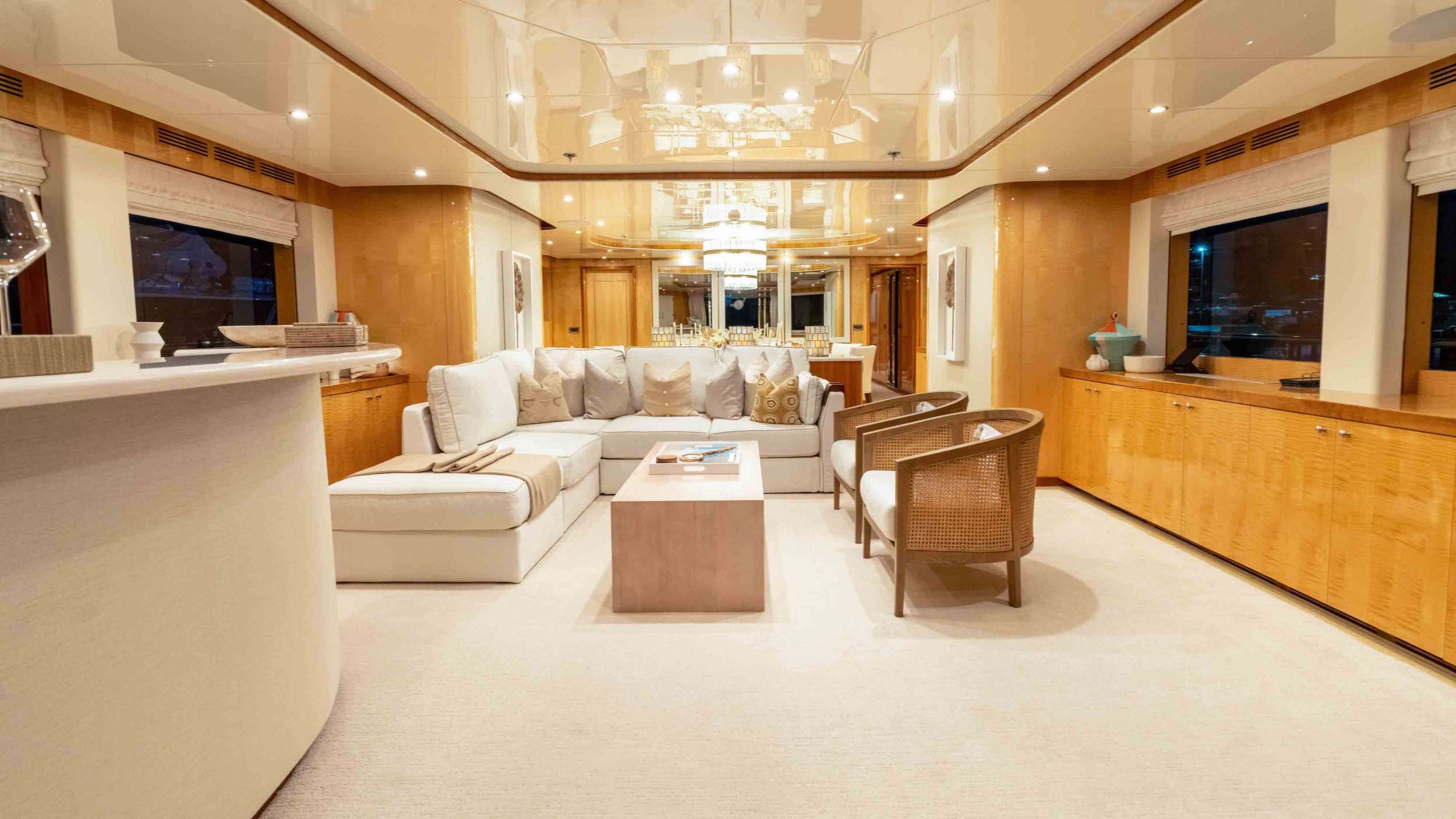 Upon arrival, you'll be greeted by the expansive aft deck dining area, a perfect setting for alfresco dining with loved ones, set against the scenic shorelines of St. John. Wander forward to the spacious foredeck, where sun-soaked lounge areas invite you to unwind and absorb the tranquil ocean blues. For panoramic views of St. Croix, ascend to the sun deck, complete with lounging spaces, a bar, a dining area, and sunbathing spots, an intimate oasis where you can savor a fine Cabernet Sauvignon in total relaxation. Wellness enthusiasts will also appreciate the yacht’s dedicated sauna and gym room, ideal for staying active and rejuvenated during your charter.