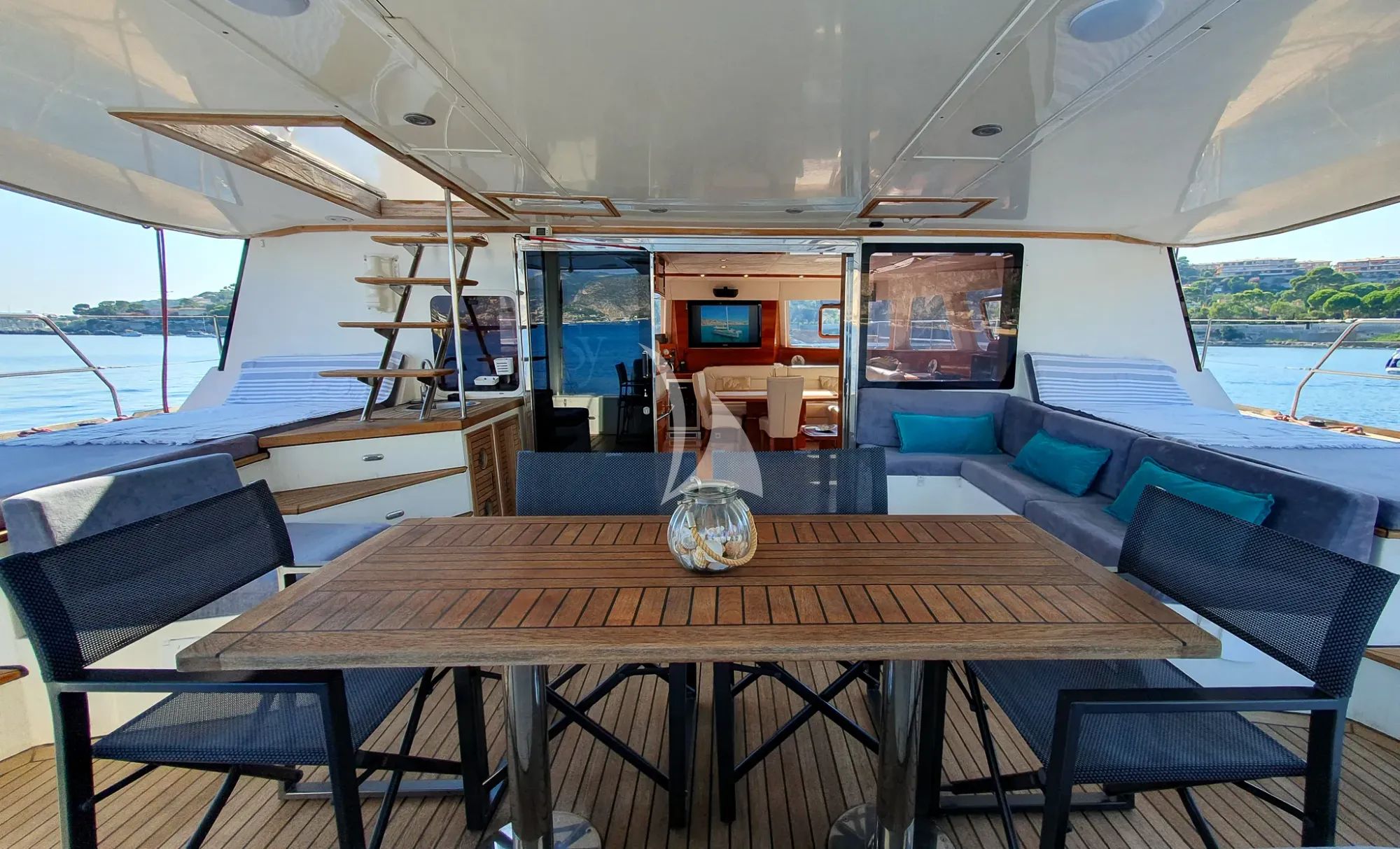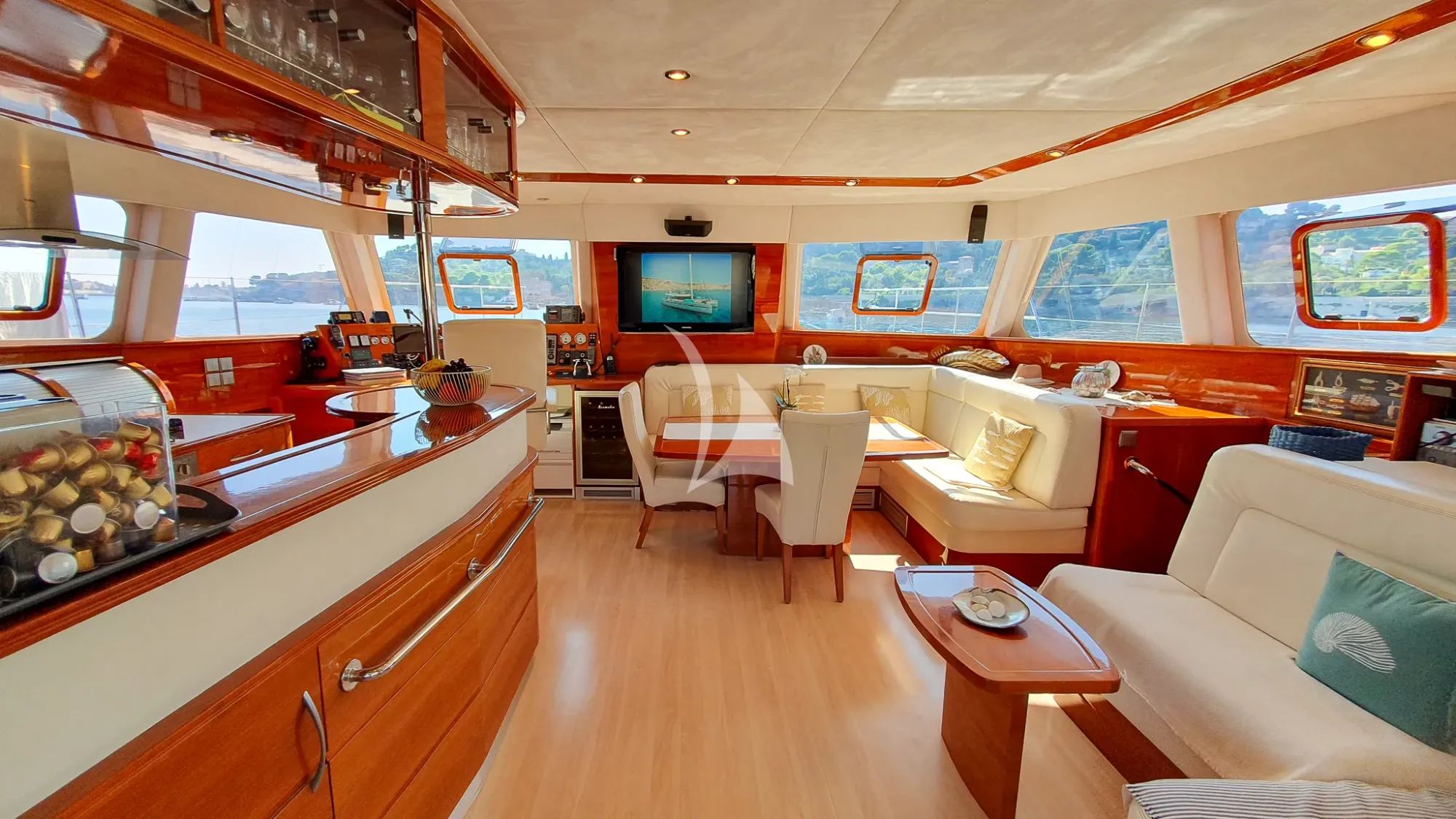 Inside, SUNNYACHT’s teak-and-contemporary interior balances refined aesthetics with a welcoming atmosphere, giving you a cozy saloon and dining space that works just as well for quiet family time as it does for more elaborate indoor celebrations. Soft textures, thoughtful finishes, and generous windows keep the mood light and relaxed, whether you are enjoying a multi-course dinner or simply sharing stories after a day on the water. Each homey cabin, complete with private ensuite facilities, extends that same premium feel, allowing you to recharge deeply so you wake ready for another indulgent day in the Riviera sun.