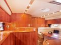 She has a double bed cabin in the fore ship and a two bed cabin in the aft, each with bath en-suite. The salon consists of a sofa in U-form, SAT TV - DVD and CD player with I-Pod Outlet and a kitchen bar. The out board dinghy is in the tender garage.