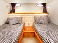 She offers a double bed cabin in the bow and a two bed guest cabin in the aft, each with bath en-suite. The saloon offers a u-shaped sofa, SAT TV, DVD and CD player with I-Pod Outlet as well as galley. The out board dinghy is stored in the tender garage.