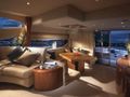 Her interior styling is typical Sunseeker and oozes class, style and sophistication. Her dark wood and chestnut interior provide a warm and comfortable environment throughout.