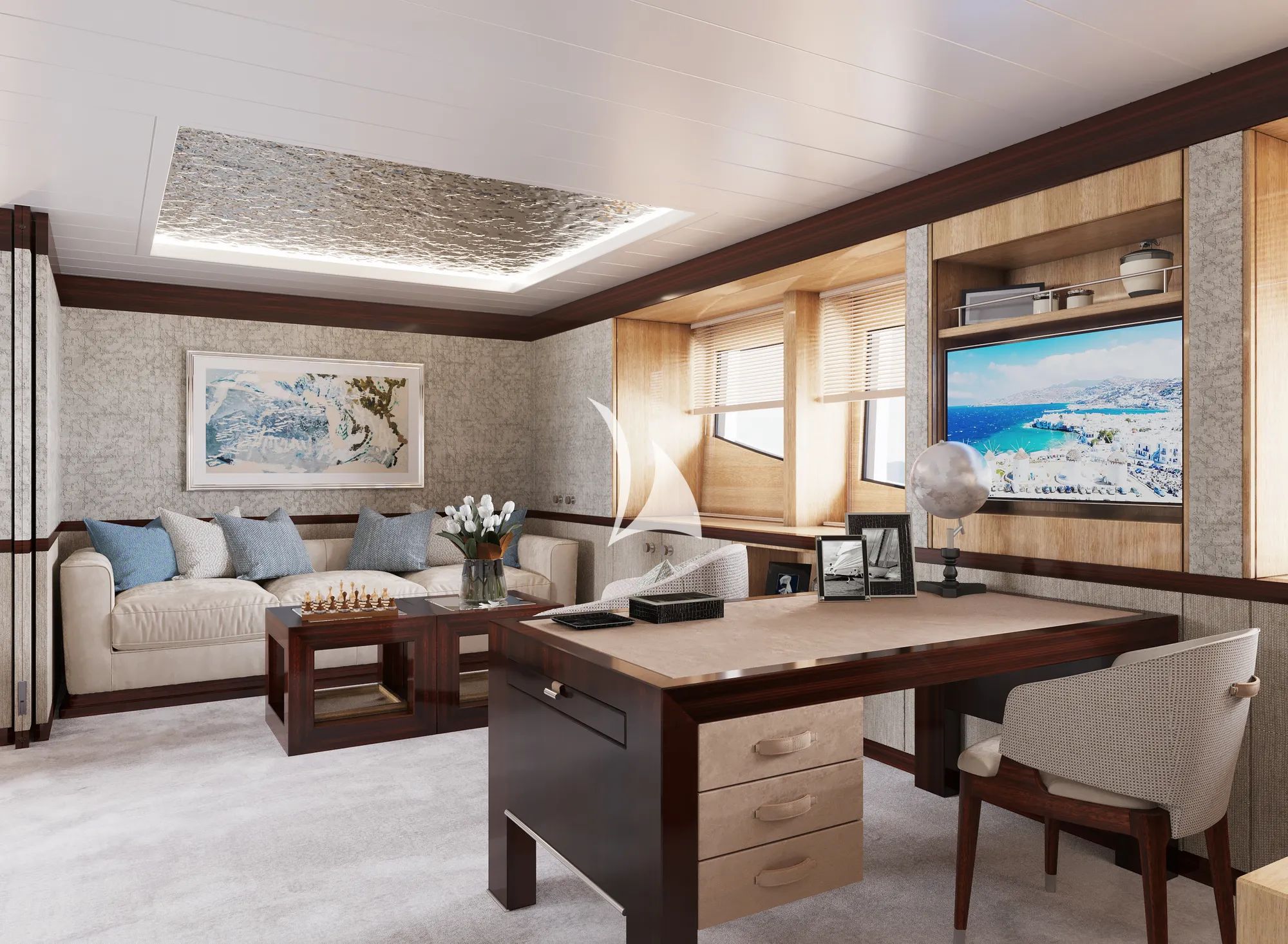 The interior of SWEET MARYI is every bit as impressive thanks to Chief Steward Sotirios Zotos and Stewardesses Rldona Kuka and Blerta Shaho, who create an atmosphere of ease, polish, and attentive care. Sotiris brings extensive luxury hospitality experience, along with a strong knowledge of fine wines and cigars, helping shape a service style that feels sophisticated without ever feeling stiff. Rldona adds warmth, positivity, and meticulous attention to detail, while Blerta contributes fine wine service, mixology, housekeeping expertise, guest care, and the reassurance of First Aid certification. Their collective approach turns time indoors into an experience of its own, making every return to SWEET MARYI after a day exploring the Cyclades feel especially welcoming.