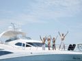 This luxury crewed charter yacht has a flybridge with 2 ample sun pads, a BBQ area for snacks and meals, and a huge U-shaped sofa and large table, both shaded by a canopy. Water-skiing or wakeboarding are also possible using the powerful tender, which has a top speed of over 40 knots. A hydraulic aft platform is available for swimming from on their sailing holiday.