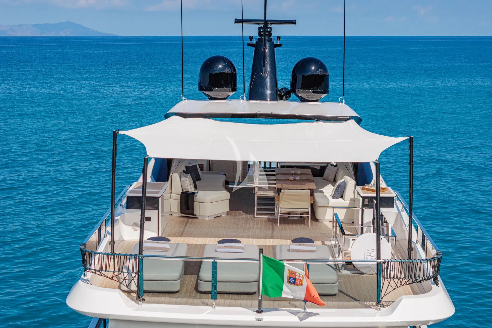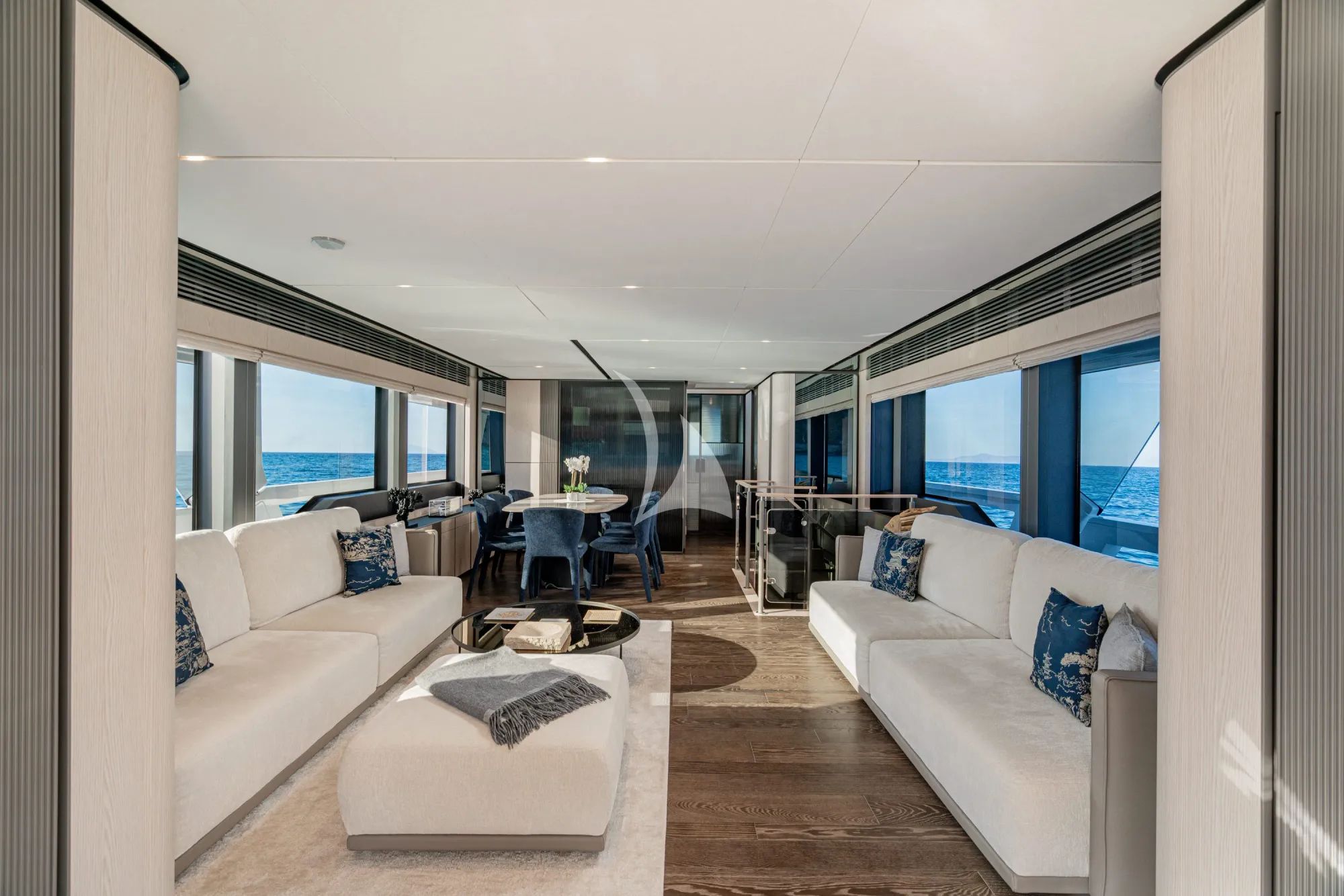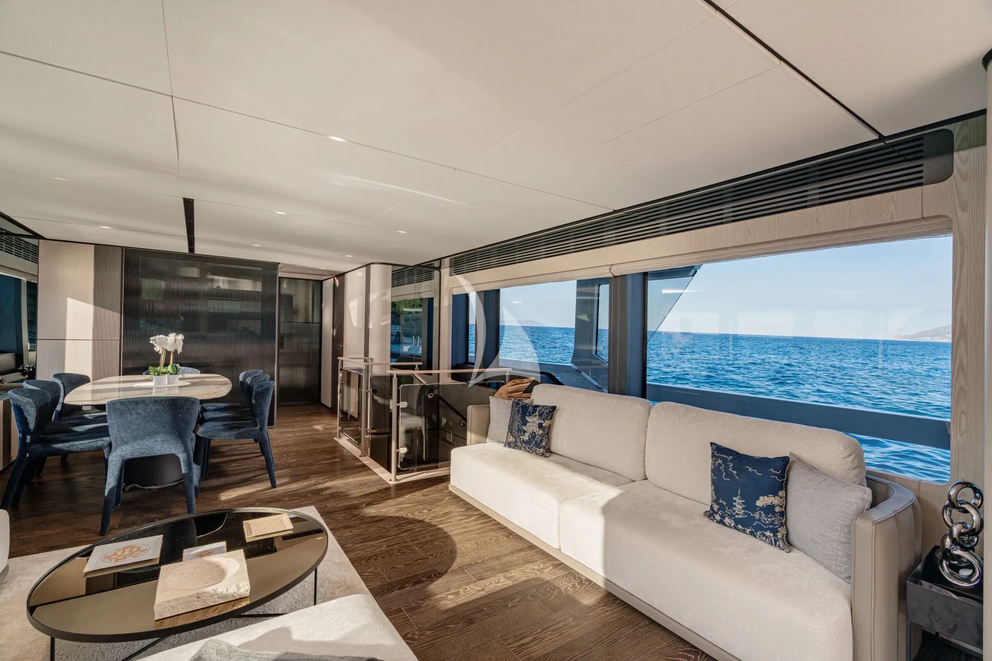 The Ferretti Infynito 80 luxury motor yacht TRILOGY is a masterpiece of design and innovation, crafted to deliver an exceptional charter experience for up to 8 guests across Sicily and the Aeolian Islands. Her sleek, contemporary exterior and sophisticated onboard layout ensure smooth cruising and absolute comfort at every moment of your journey. With inviting spaces for socializing, dining, and unwinding, TRILOGY blends Italian craftsmanship with effortless style.