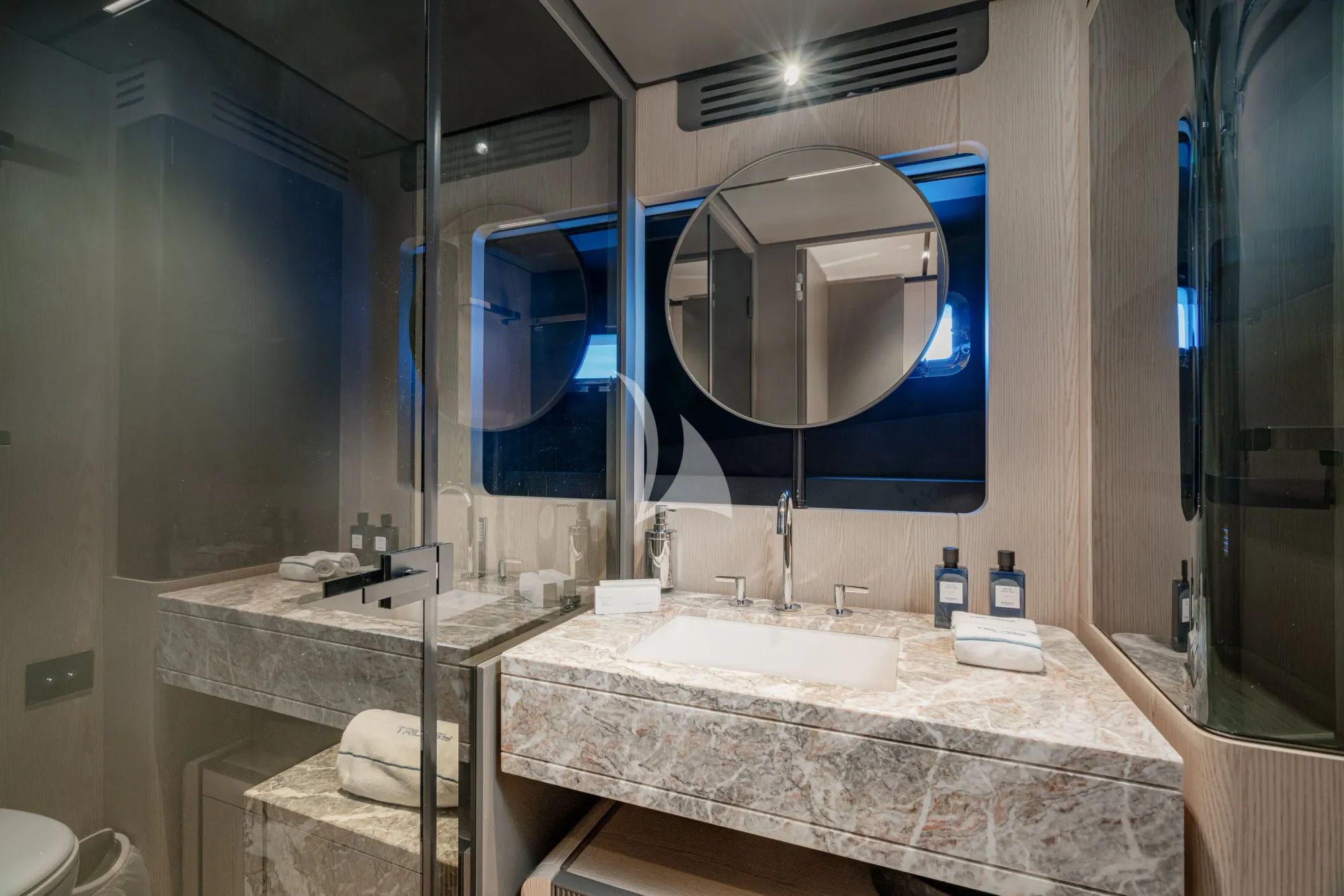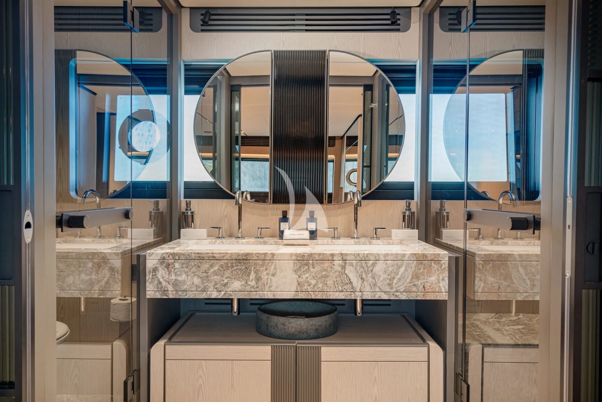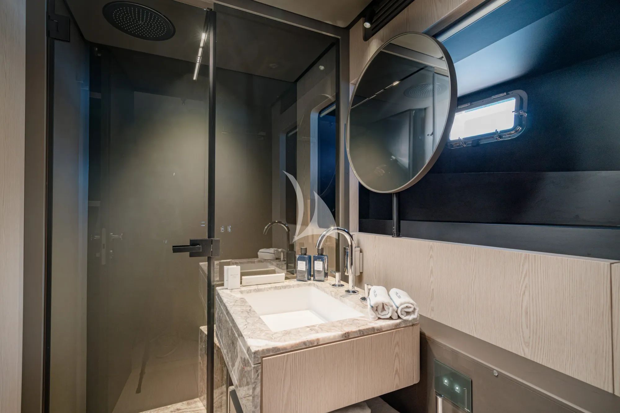 The Ferretti Infynito 80 luxury motor yacht TRILOGY is a masterpiece of design and innovation, crafted to deliver an exceptional charter experience for up to 8 guests across Sicily and the Aeolian Islands. Her sleek, contemporary exterior and sophisticated onboard layout ensure smooth cruising and absolute comfort at every moment of your journey. With inviting spaces for socializing, dining, and unwinding, TRILOGY blends Italian craftsmanship with effortless style.
