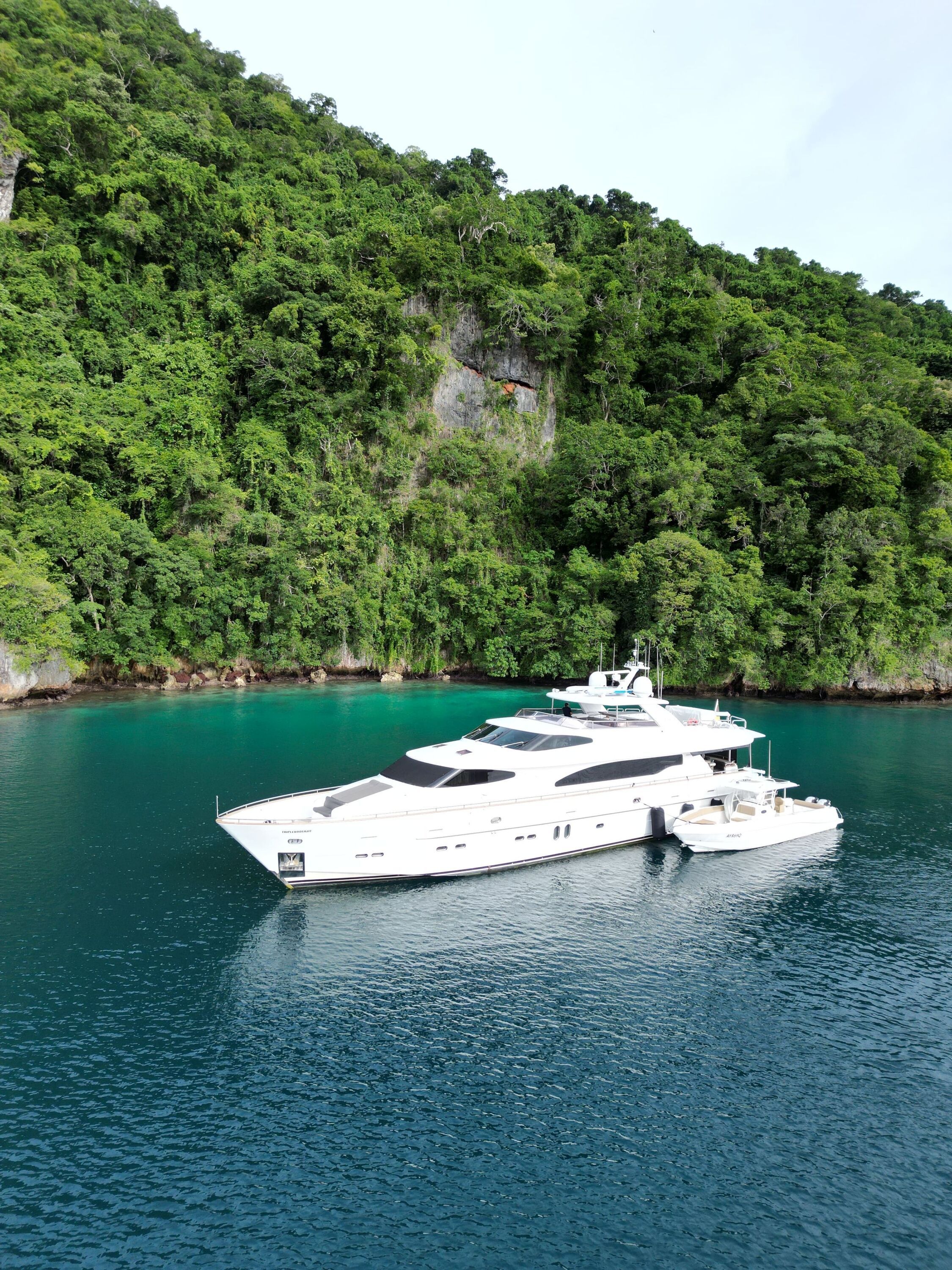 The Horizon 94 crewed motor yacht TRIPLE888EIGHT is a striking blend of elegance and performance, her sleek white hull glistening against the dazzling blues of Fiji’s island-dotted seas. Crafted for indulgence, discovery, and connection, she sets the stage for an extraordinary charter experience filled with adventure and serenity.