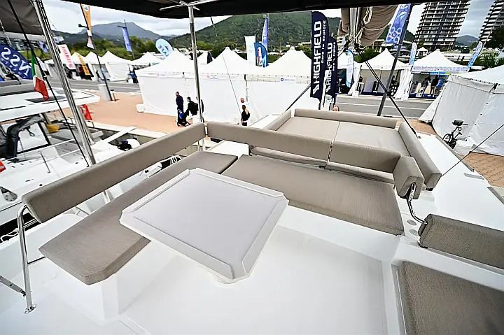 The Bali 4.6 TRITONE transforms your charter experience with its signature open-concept design, where the aft cockpit and saloon unify effortlessly through the innovative garage-style door. This instantly creates a wide, free-flowing space filled with natural light and refreshing sea air, giving your group plenty of room to relax, dine, and enjoy the scenery together. With the Bali layout known for maximizing comfort and openness, TRITONE offers an environment that feels bright, airy, and deeply inviting.